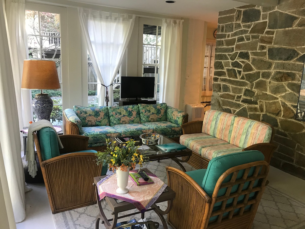 Esta suite Garden luminosa, tranquila y privada es una extensión de la casa, con entrada independiente, vistas al jardín y a la piscina, y una zona boscosa. La unidad tiene dos habitaciones que están parcialmente separadas por un hermoso muro de piedra. Las habitaciones ofrecen todas las comodidades necesarias para una estancia, ya sea un fin de semana o más. La suite Garden no tiene cocina. Cleveland Park es un barrio histórico, con excelentes restaurantes, tiendas y preciosos paseos cercanos, como Rock Creek Park y el zoológico.