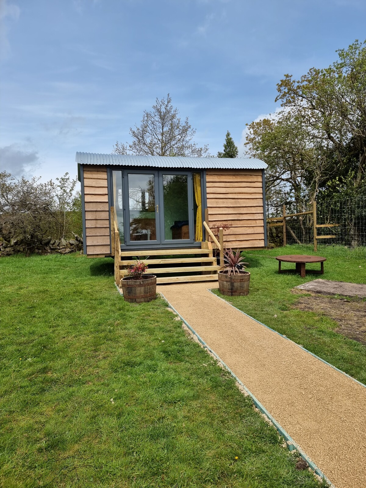 We have 4 beautiful Shepherd huts available, all have power, heating, plenty of storage space, seating area, table and stools and beautiful views. 1 cozy couples hut 1 x3 person hut 2 x4 people, 1 x 2 double beds and 1 with 1 x double bed a bunk beds. We have all modern facilities available for guests including toilets, wet rooms and a fully fitted kitchen. Easy access to some of the most beautiful walks in the area.