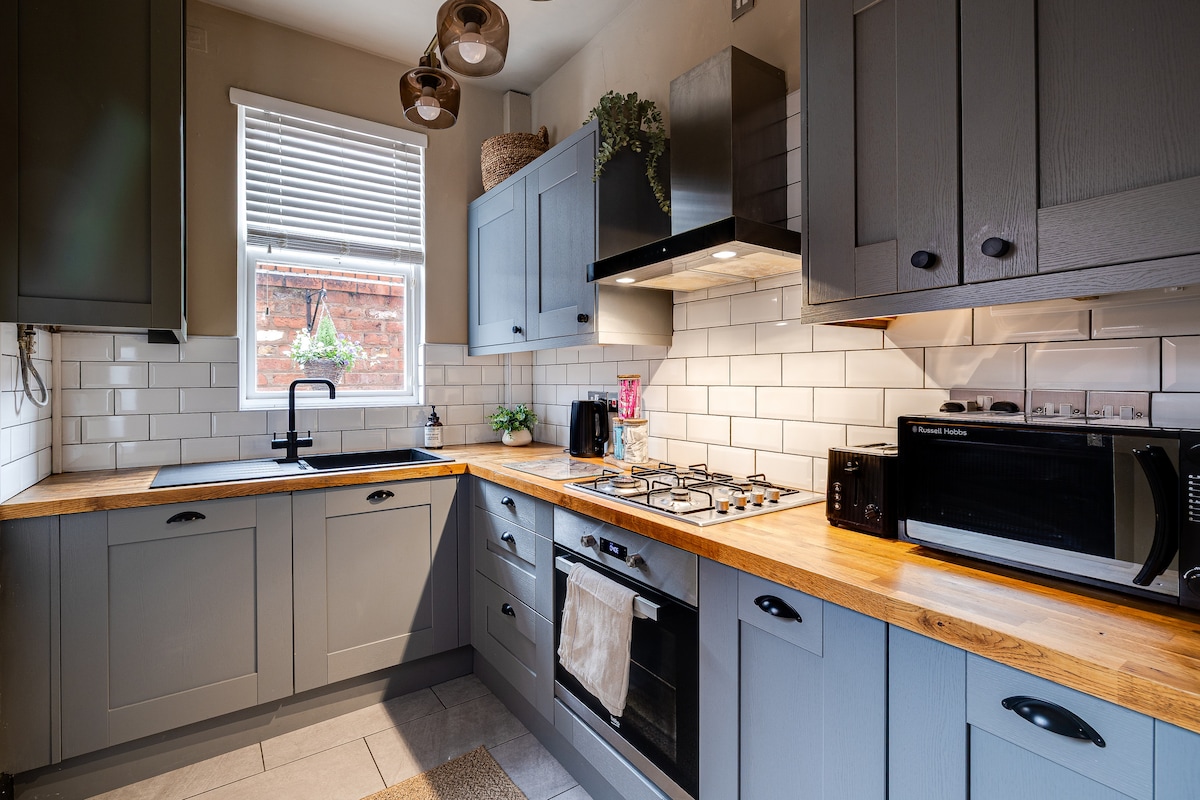 Albion Place es una casa de dos dormitorios renovada con buen gusto dentro de las famosas murallas de Chester City. La casa se encuentra a solo unos pasos del río Dee y del centro de la ciudad. La propiedad tiene 2 dormitorios, uno con una cama tamaño king y el otro con una cama doble. Ambas habitaciones tienen armarios empotrados, cargadores de teléfono USB y secadores de pelo. La cocina está totalmente equipada con electrodomésticos de calidad, cafetera Nespresso, nevera, congelador, lavadora y cómoda zona de comedor. Las grandes puertas del patio conducen al patio.