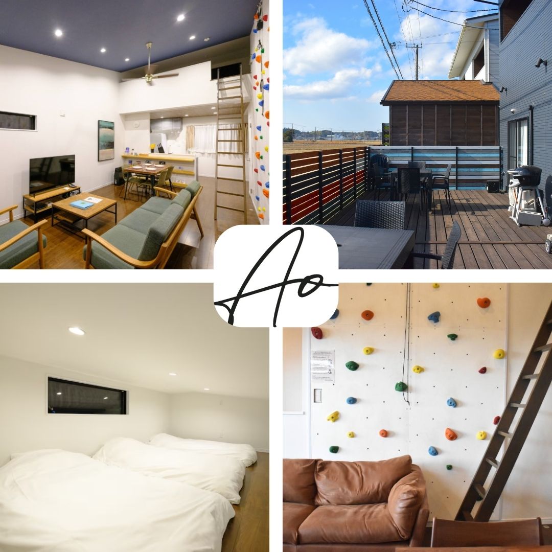 Alquilaremos 2 habitaciones con tipo dúplex (2º piso + loft + 2 habitaciones con terraza de madera). Puede alojar hasta 14 personas y disfrutar de una estancia relajante en un espacio espacioso. * Nota: Los dos tipos de casas adosadas no están conectados en el interior, y cada entrada es a través de una entrada separada. ¡Buen acceso a 4 minutos en auto del mar! Disfruta de una variedad de actividades durante tu estancia, como barbacoa, surf, observación astronómica y boulder en interiores. Hay muchos lugares para practicar surf cerca, y puedes quedarte con mascotas (hasta 3 perros pequeños o hasta 2 perros medianos), así que pasa un rato especial con tus familiares y amigos. * No se permiten mascotas que no sean perros. Ahhhhhhhhhhhhhhhhhhhhhhhhhhhhhhhhhhhhhhhhh
