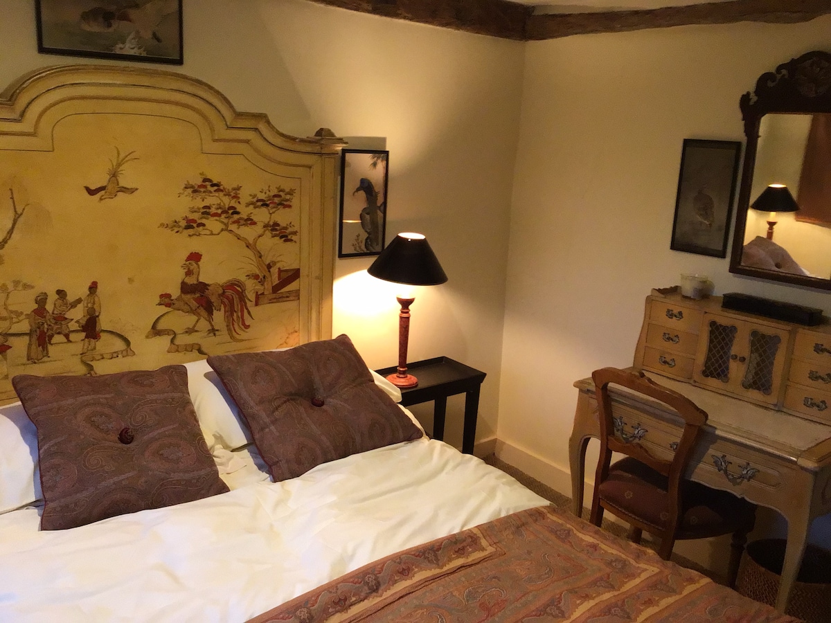 Tenemos un dormitorio disponible en nuestra casa de campo que data del siglo XVII. La cama se convertirá de DOBLE a INDIVIDUAL según sea necesario. La habitación es luminosa y espaciosa. Hay un amplio espacio en el armario y una cómoda empotrada. También hay amplias tomas de corriente y wifi. Tenemos un baño familiar disponible arriba que se comparte con quien se hospeda. Siempre hay toallas limpias disponibles. Hay una espaciosa cocina/sala de desayunos donde puedes utilizar las instalaciones para preparar tus propias comidas si lo deseas y guardar alimentos en la nevera/congelador. Por favor, ordena después :-). Hay servicio de lavandería disponible por un pequeño coste adicional. Queremos que te sientas cómodo y, si tienes algún otro requisito, no dudes en preguntar. Tenemos un atractivo jardín orientado al sur que se extiende junto a nuestras dos cabañas y un amplio espacio de estacionamiento fuera de la carretera. Tenemos una barbacoa permanente incorporada que los huéspedes pueden utilizar en nuestro jardín. Nuestra casa está situada en la A29, a 10 minutos en coche de Chichester. La A29 es una carretera principal y, aunque se calma mucho por la noche, para aquellos de ustedes con oídos sensibles, puede que este no sea el lugar para ustedes. La histórica ciudad de Chichester, con su hermosa catedral, el famoso Festival Theatre, el palacio romano de Fishbourne, museos, galería de arte, jardines junto con sus muchas tiendas y restaurantes independientes interesantes, está a unas 5 millas de distancia. Arundel, que cuenta con un magnífico castillo situado sobre el valle del río Arun, también está cerca, al igual que los hipódromos de Fontwell y Goodwood. La costa, junto con sus centros turísticos y playas, está a poca distancia, al igual que el recién designado Parque Nacional de South Downs, ideal para practicar senderismo, ciclismo y equitación. También cuenta con una serie de museos al aire libre y reservas naturales como Kingley Vale, considerado el bosque natural de tejos más grande de Europa. Tanto si prefieres la playa como la hermosa campiña ondulada de Sussex Downs, hay mucho que disfrutar en nuestra zona.