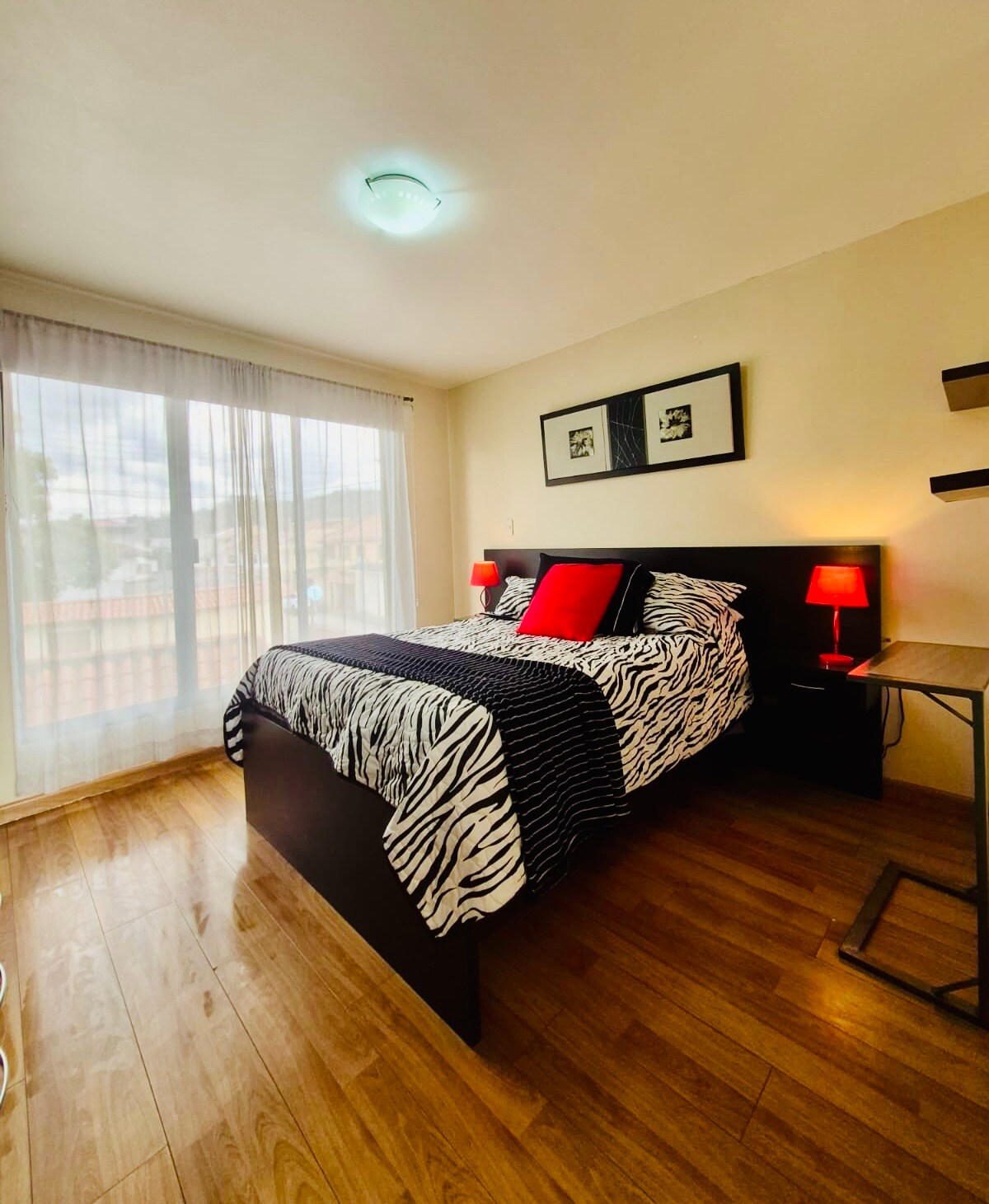Suite nueva y acogedora en la zona de Wayra Plaza, junto al Parque Paraíso, un entorno lleno de naturaleza. Cercana a hospitales, es ideal para 2 personas y cuenta con cocina equipada, lavadora-secadora, TV con plataformas de entretenimiento, WiFi y estacionamiento privado frente a la puerta. En condominio privado que ofrece áreas verdes y acceso a varias líneas de bus, lo que facilita recorrer la ciudad. Perfecta tanto para turismo como para viajes de trabajo.