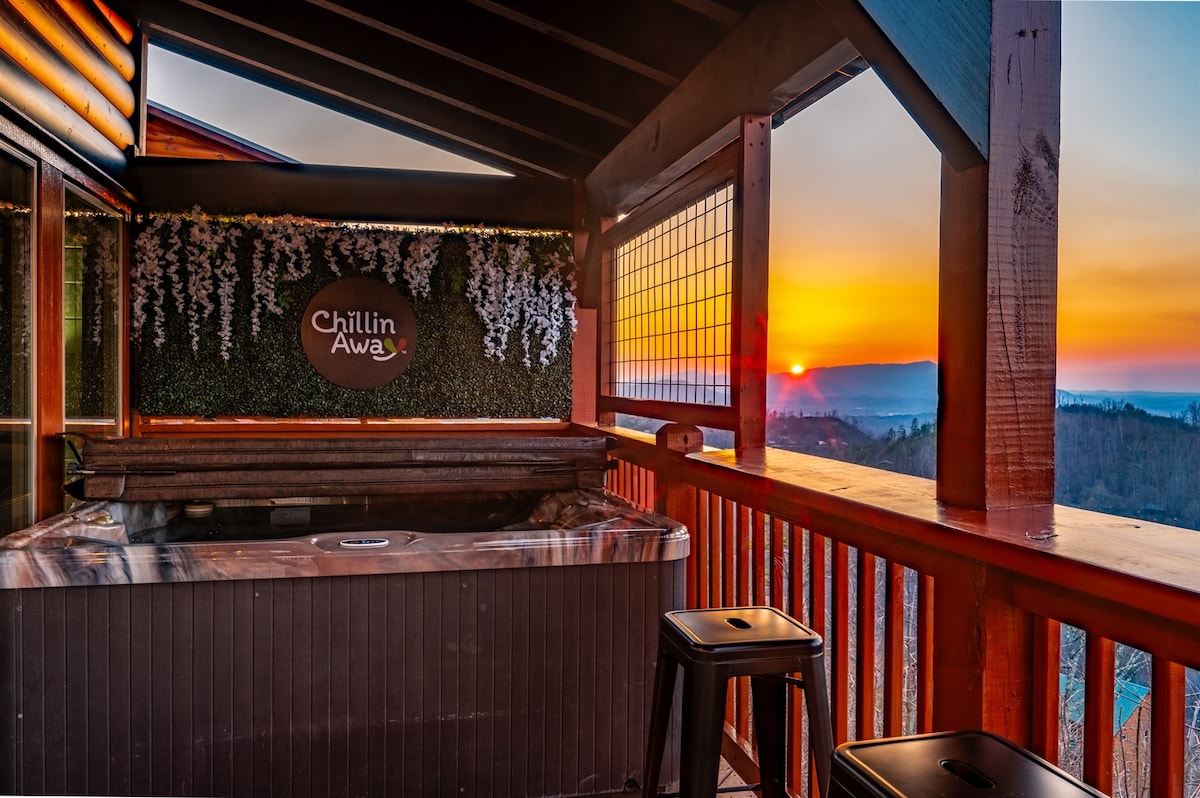 Disfruta de las vistas de Smoky Mountain de un millón de dólares de las que los huéspedes no pueden dejar de hablar en Chillin Away. Ubicada en lo alto de las montañas, esta cabaña privada de 3 dormitorios ofrece amaneceres impresionantes, atardeceres resplandecientes e incluso fuegos artificiales de Dollywood desde la terraza. Relájate en el jacuzzi, reúnete junto a las chimeneas interiores y exteriores y disfruta de un loft lleno de juegos que le encanta a toda la familia. Impecablemente limpio, increíblemente cómodo y a minutos de Pigeon Forge, pero pacíficamente aislado. Capacidad para 6 personas.