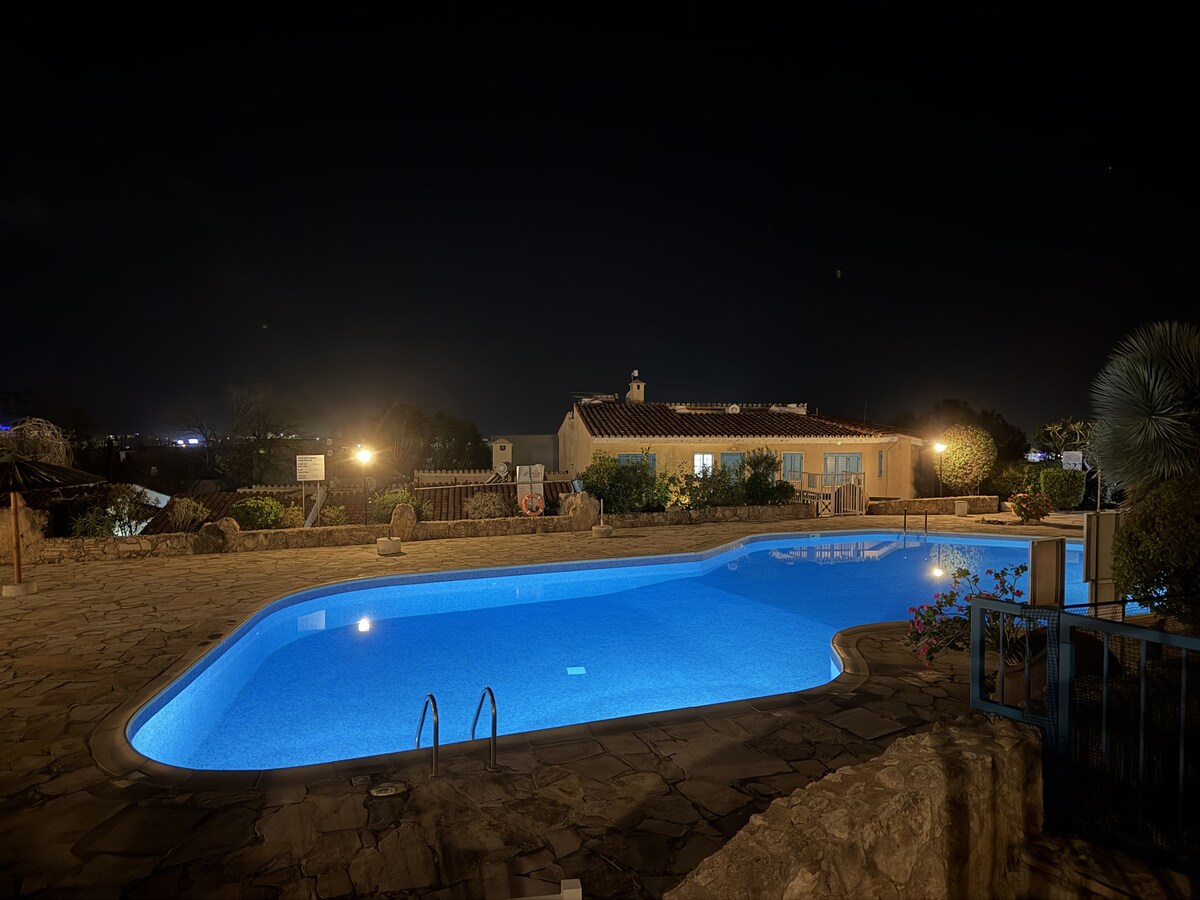 ¡Adéntrate en la serenidad! Escápate a un escondite bañado por el sol en una tranquila ladera. Relájate junto a la piscina, toma el sol y disfruta de impresionantes vistas al mar y puestas de sol doradas. A solo 15 minutos en auto de Pafos, nuestros dos encantadores estudios son la base perfecta para explorar. Las playas, los senderos naturales, el puerto, la laguna azul y el casco antiguo de Pafos están a 15-30 minutos en auto. Wifi gratuito, estacionamiento, una plaza del pueblo con tabernas y un bar de vinos, a solo 4 minutos en auto. El coche es esencial. Piscina abierta todo el año (no climatizada).