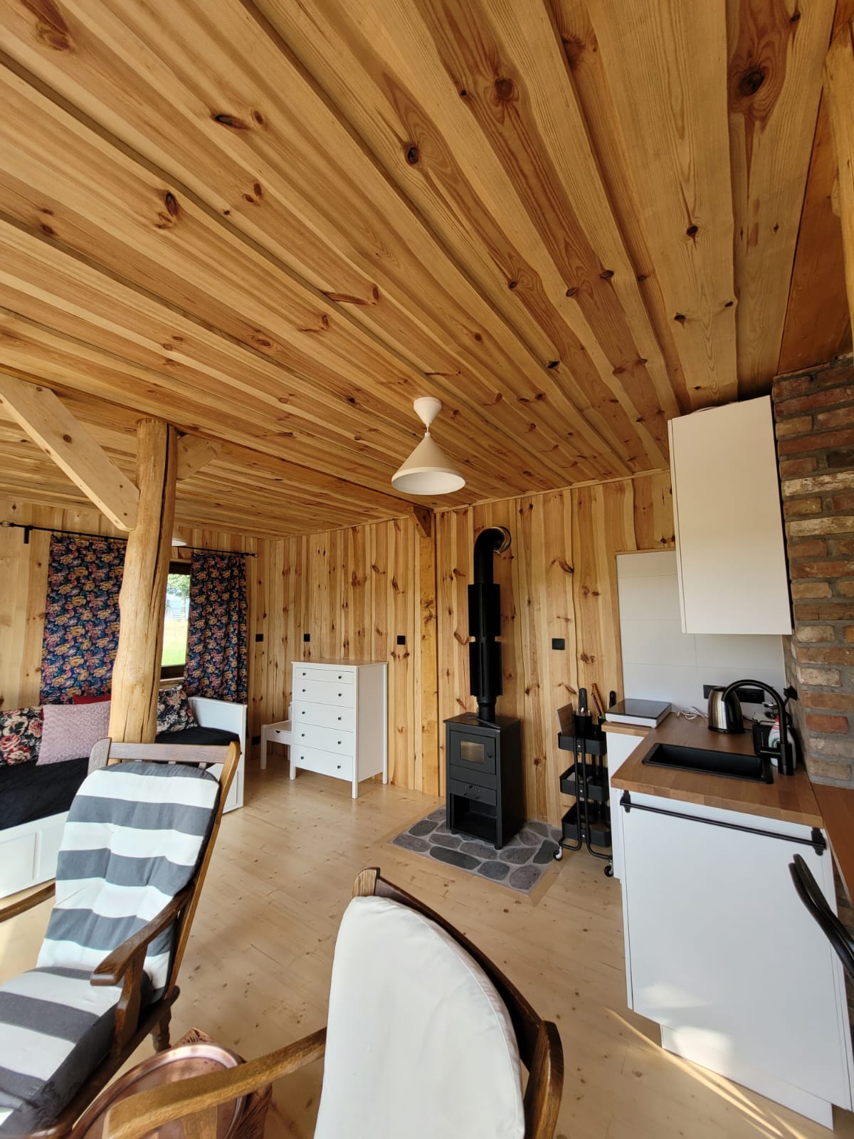 Esta casa de estanque con techo verde, construida en el verano de 2023, es absolutamente genial. La casa está en el terreno de un vivero de saúco y espino amarillo. Tienes total privacidad, pero estamos "siempre" cerca para ayudarte. Hablamos neerlandés, polaco, alemán e inglés. La casa consta de 1 habitación con cocina, sala de estar y zona de dormitorio. Además, hay un aseo con ducha independiente. El agua caliente se suministra a través de la caldera de calefacción central de leña. Hay Wi-Fi, pero su calidad varía.