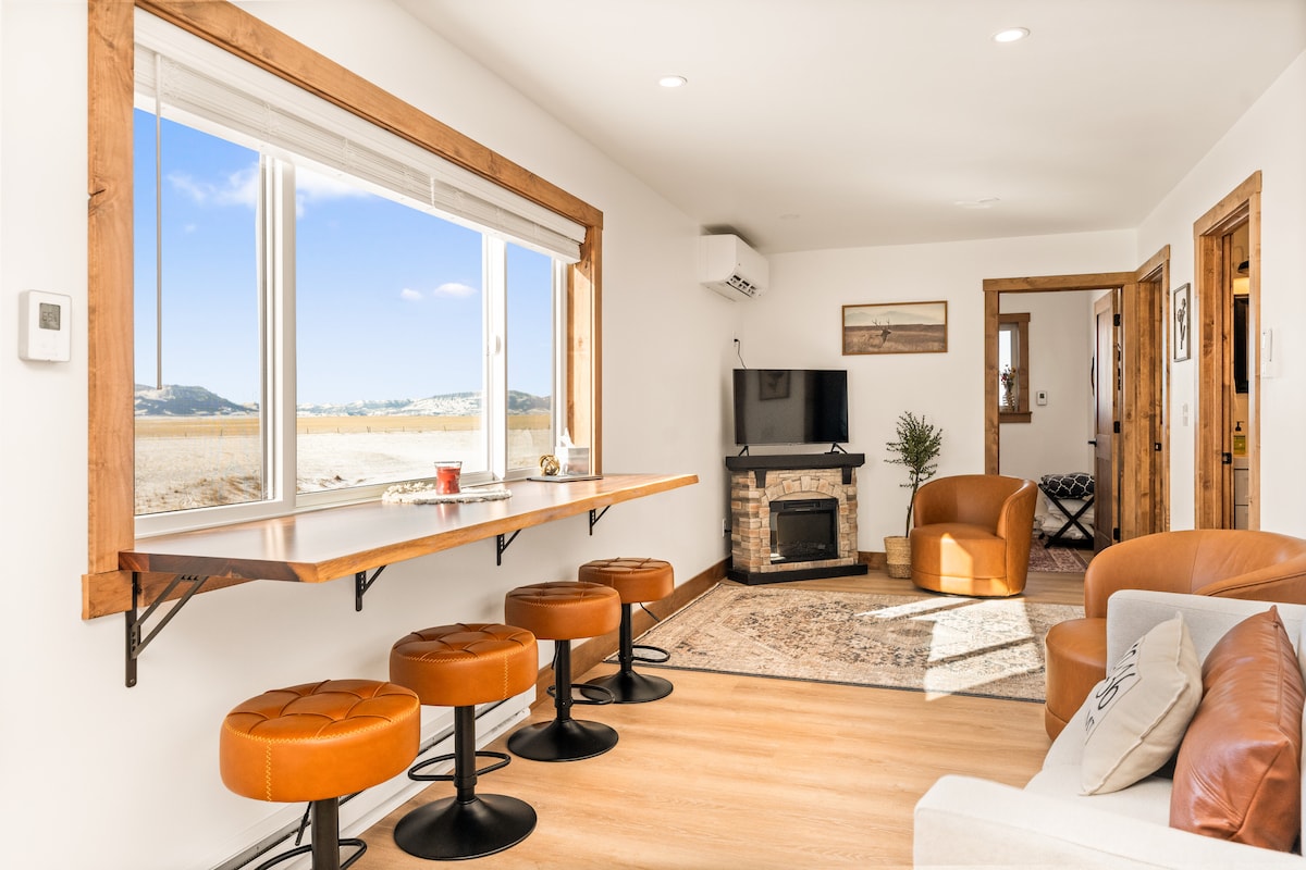 Disfruta de impresionantes amaneceres y puestas de sol en Hangin' Heart Ranch, ubicado en la tranquila campiña al oeste de Great Falls, a 10 a 15 minutos de la ciudad. Este acogedor alojamiento único tiene capacidad para 2 adultos (*posiblemente hasta 4) y cuenta con Internet de alta velocidad, un pequeño espacio de trabajo, TV de alta definición, cocina bien equipada y lavadora y secadora de carga frontal. Lo mejor de todo es sumergirte bajo un cielo estrellado en el jacuzzi justo al lado de tu puerta. * ¿Necesitas espacio para uno o dos huéspedes adicionales? Avísanos, es posible que podamos ofrecer un sofá cama extraíble.