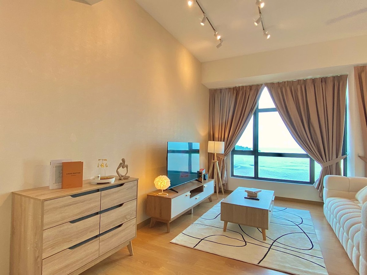 ¡La mejor suite de luna de miel en Kuantan! ¡Imperium Residence es un nuevo rascacielos frente al mar, junto con el Swiss Belhotel Kuantan y sus instalaciones! Este es el único estudio de 1 dormitorio con 2 balcones grandes para que disfrutes de la encantadora vista al mar. Además, puedes disfrutar de la alta privacidad y comodidad de estacionar tu coche justo delante de tu puerta. La casa está diseñada como un santuario donde puedes relajar tu mente y alma, y crear dulces momentos románticos con tu ser querido :)