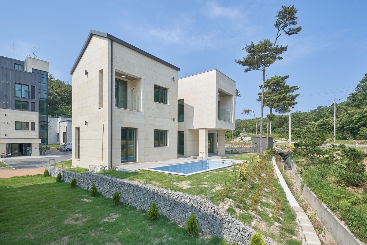 Descansa en Seosan desde una vida urbana recurrente y agotadora. La casa en la villa de la piscina, donde puedes disfrutar del mar y las montañas al mismo tiempo. Se encuentra en las estribaciones de Mangil Mountain, y la playa está a unos 10 minutos. La casa en la villa de la piscina consta de una estructura independiente donde puedes descansar por completo. La piscina privada te permite pasar tiempo con tus seres queridos.
