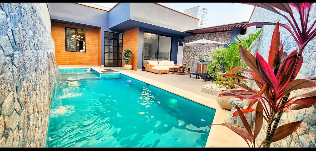 Ven y descansa unos días placenteros con toda la familia en este tranquilo lugar, a 10 minutos del ovalo de Cieneguilla. Área total de 1,000 m2, casa de campo con jardín, piscina de 9mx4m con luces y cascada, parrilla y área para juegos. TV de 75 pulgadas en sala principal con Directv . Sala de TV de 55 pulgadas. Internet. La piscina temperada tiene un costo adicional. Por normas del condominio, se solicitara lista de huéspedes nombres, apellidos edad ,DNI y placa de vehículos.