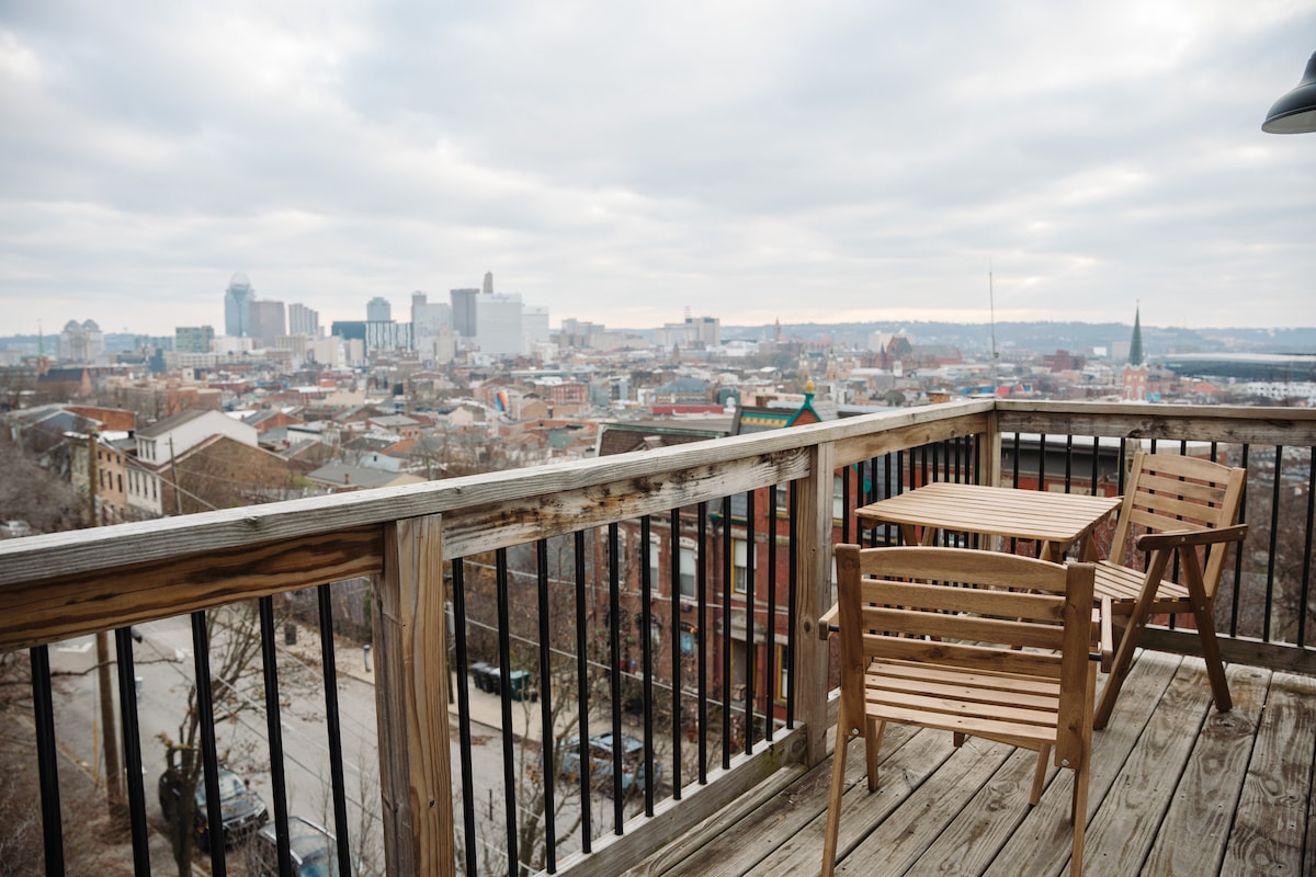 Espectacular vista de Cincinnati en un alojamiento completo estilo hotelero boutique diseñado por un diseñador galardonado. • Ningún Airbnb en el centro tiene tanto • En la calle tranquila/segura. • Ubicación céntrica • Cámara de seguridad en la entrada • La cerradura programada cambió después de cada huésped. • Uno de los "7 mejores Airbnb en Cincinnati" de Cincy Refined • Paseo/bicicleta/scooter al centro/para cenar/compras, vida nocturna, UC y rojos/Bengals • A 20 minutos del aeropuerto • Acceso rápido a la I-71 y la I-75 • Increíbles espacios privados interiores y al aire libre