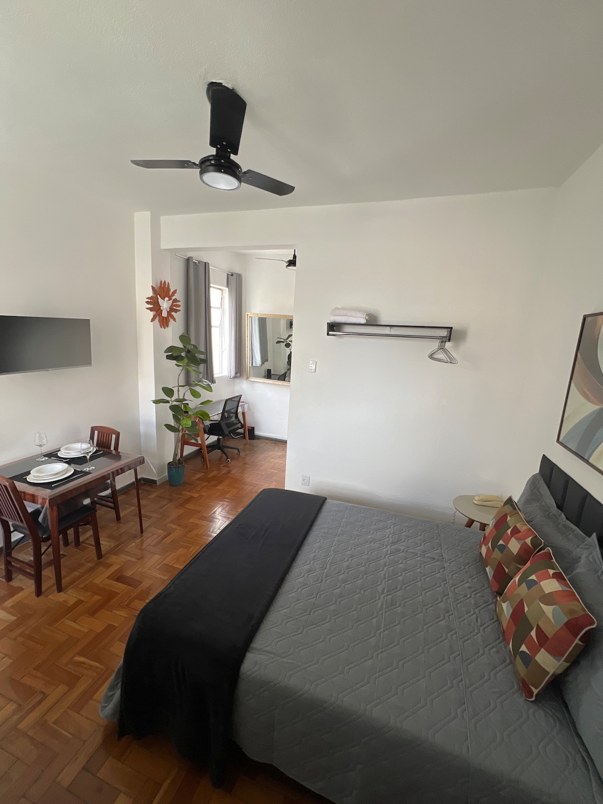 El estudio es tranquilo y tiene capacidad para hasta 03 huéspedes. Con ropa de cama, plancha, secadora, cocina completa y conexión a Internet Wi-Fi. Situado en la región del Centro Sul de Belo Horizonte, junto a Shopping Cidade y Sesc Palladium. Cerca del Palacio de las Artes, el Parque Municipal, las plazas: da Estação, Sete, Raul Soares y Liberdade, Minascentro y Mercado Central. Estacionamiento privado las 24 horas, hace 100 metros Si tienes alguna pregunta, no dudes en ponerte en contacto con nosotros. CARNAVAL 2026 Mínimo 5 noches y 2 huéspedes