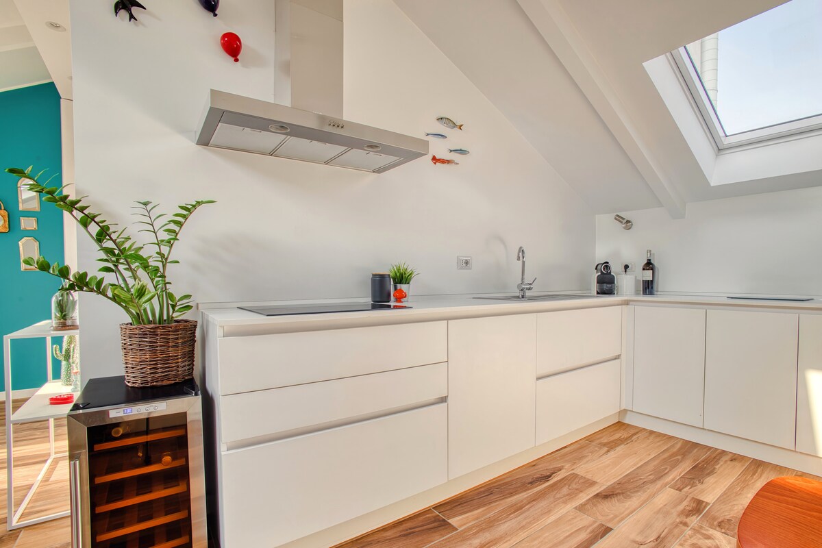 Un loft elegante y luminoso ideal para viajeros, profesionales/trabajadores remotos y huéspedes de ocio por igual. 60 metros cuadrados con vigas a la vista y terraza privada. Wi-Fi muy rápido de 1 Gbps de fibra, escritorio grande, espacio de trabajo cómodo, aire acondicionado y comodidades modernas. Situado en una zona moderna y cosmopolita, llena de arquitectura Art Nouveau, cafés independientes, bares de diseño y restaurantes internacionales. A pocos minutos a pie de Corso Buenos Aires, una de las calles comerciales más largas de Europa.