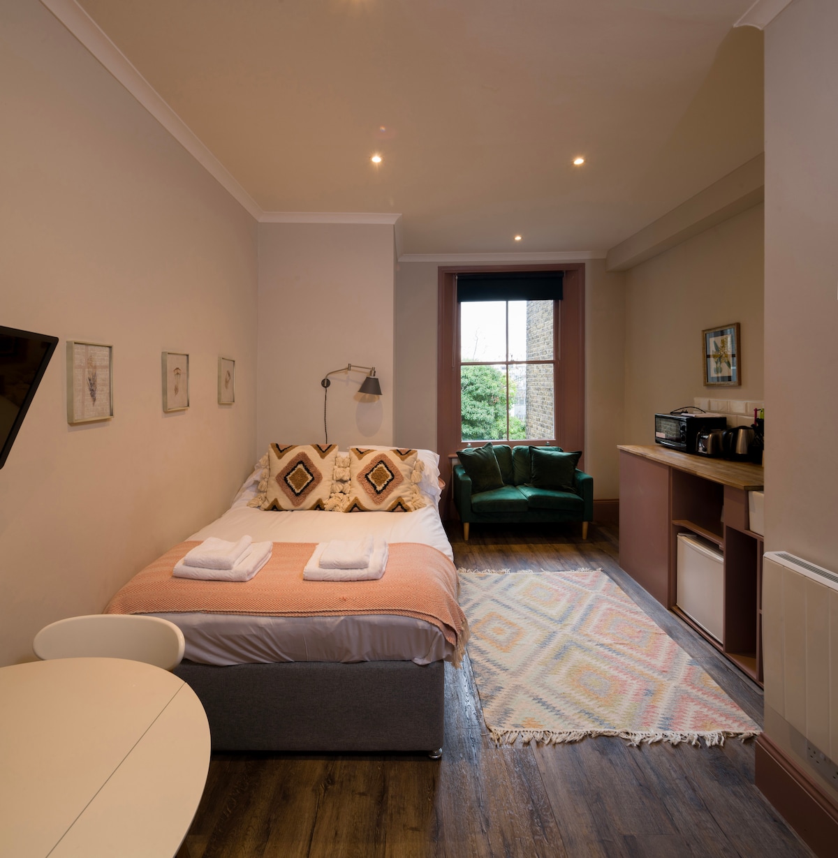 ¡Pequeño pero perfecto! Un apartamento tipo estudio bellamente renovado en el corazón de Brockley. A un minuto a pie de la estación de tren y de cercanías. Cafeterías, restaurantes y un pub a la vuelta de la esquina. Una cama tamaño king y persianas opacas para que duermas bien por la noche. Desde la estación de Brockley se tarda 9 minutos en llegar al Puente de Londres, 20 minutos a Shoreditch, 30 minutos a Oxford Street y 40 minutos a Gatwick.