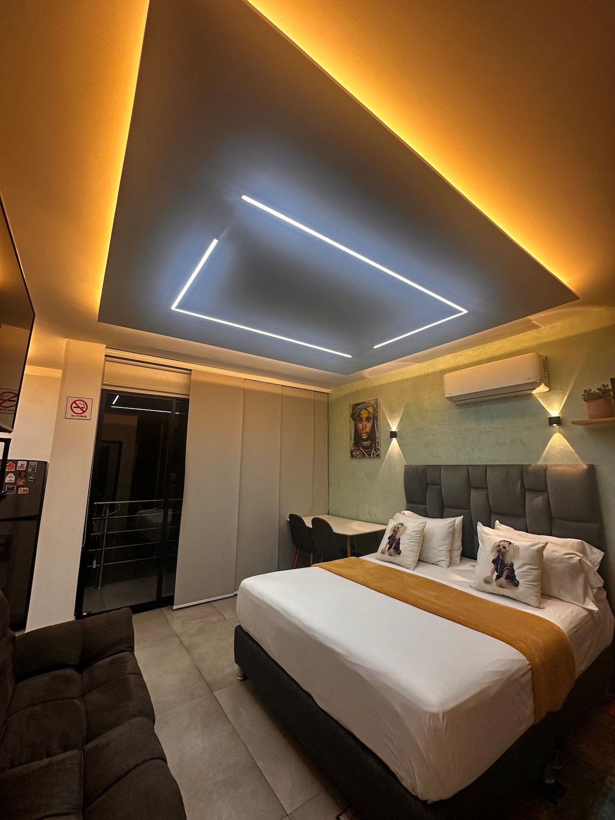 Ubicado en El Peñón, uno de los barrios más seguros y tranquilos de Cali. A pasos del Hotel Dann Carlton 5⭐️, rodeado de restaurantes, bares, discotecas, casino, museo y parque. Contamos con aire acondicionado, WiFi rápido, TV con apps de streaming y zona de lavandería 24/7 gratis. Se puede escuchar el paso de vehículos. Ideal para disfrutar la ciudad con comodidad y excelente ubicación. Además, ofrecemos un ambiente limpio, acogedor y con atención rápida ante cualquier necesidad.