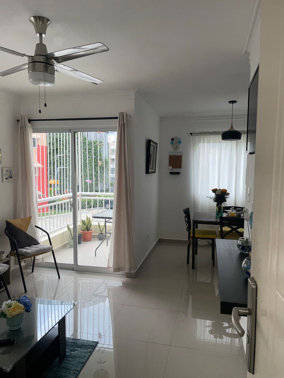 This beautiful apartment has the furniture and utensils you need for a pleasant stay. It is located in one of the most modern and newly built housing towers in the City of Sto Dgo. With 2 levels of social areas of which you can enjoy its cinema room, gym, Lobby, furnished terrace, 2 independent Jacuzzi areas, playground for children and meeting room. The Tower has 24 hour security service and its common areas have security cameras. If you need food or transport serv. let me know and I recomend