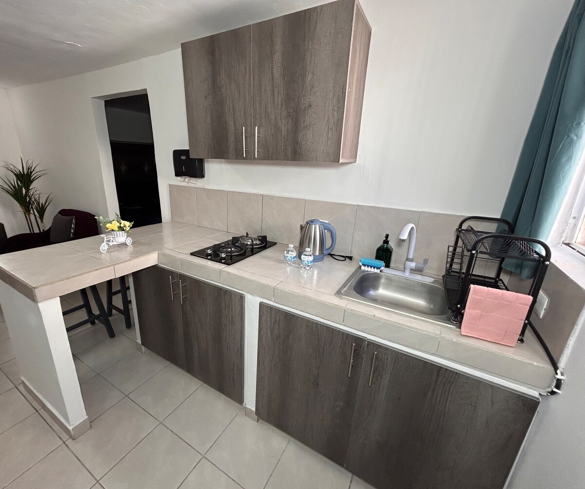 Disfruta de la sencillez de este alojamiento tranquilo y céntrico. privada exclusiva en la zona norte de ciudad obregon , cuenta con vigilante, tarjeta de acceso controlado, gimnasio y área de alberca. El departamento está equipado con aire acondicionado, cama matrimonial closet , pantalla Led , Internet wifi , baño completo, cocina equipada para 2 personas y un pequeño patio.