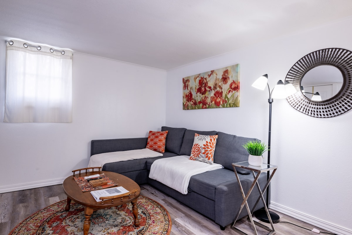 Te damos la bienvenida a un espacio tranquilo y abierto para relajarte mientras exploras Portland. Un nuevo departamento planificado con propósito que está lleno de arte original, murales, comodidades y características de diseño pacífico. ¡Nos ENCANTAN tus mascotas y les damos la bienvenida para que se queden contigo! Cada mascota cuesta $25 por reservación. La casa Light está cerca de excelentes restaurantes, divertidos bares del barrio de Portland, heladerías, famosas escenas de carritos de comida de Portland, supermercados boutique, parques y mucho más.