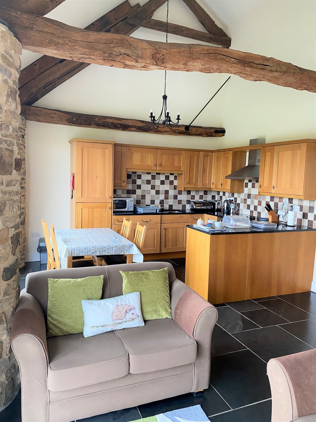Ven y disfruta de un retiro rural en nuestro granero recién convertido con vistas inigualables a Exmoor y un acogedor interior elegante. Situado en privado dentro de una granja en funcionamiento, relájate en el amplio patio, el jardín aislado o en el lujoso jacuzzi. Cada dormitorio tiene un espacioso baño privado con bañera independiente y ducha a ras de suelo. Calefacción por suelo radiante y una acogedora estufa de leña. Hay un cargador de vehículos eléctricos en el granero. Playas y páramos a media hora en coche. Al estar dentro de una granja en funcionamiento, lamentablemente no podemos permitir perros.