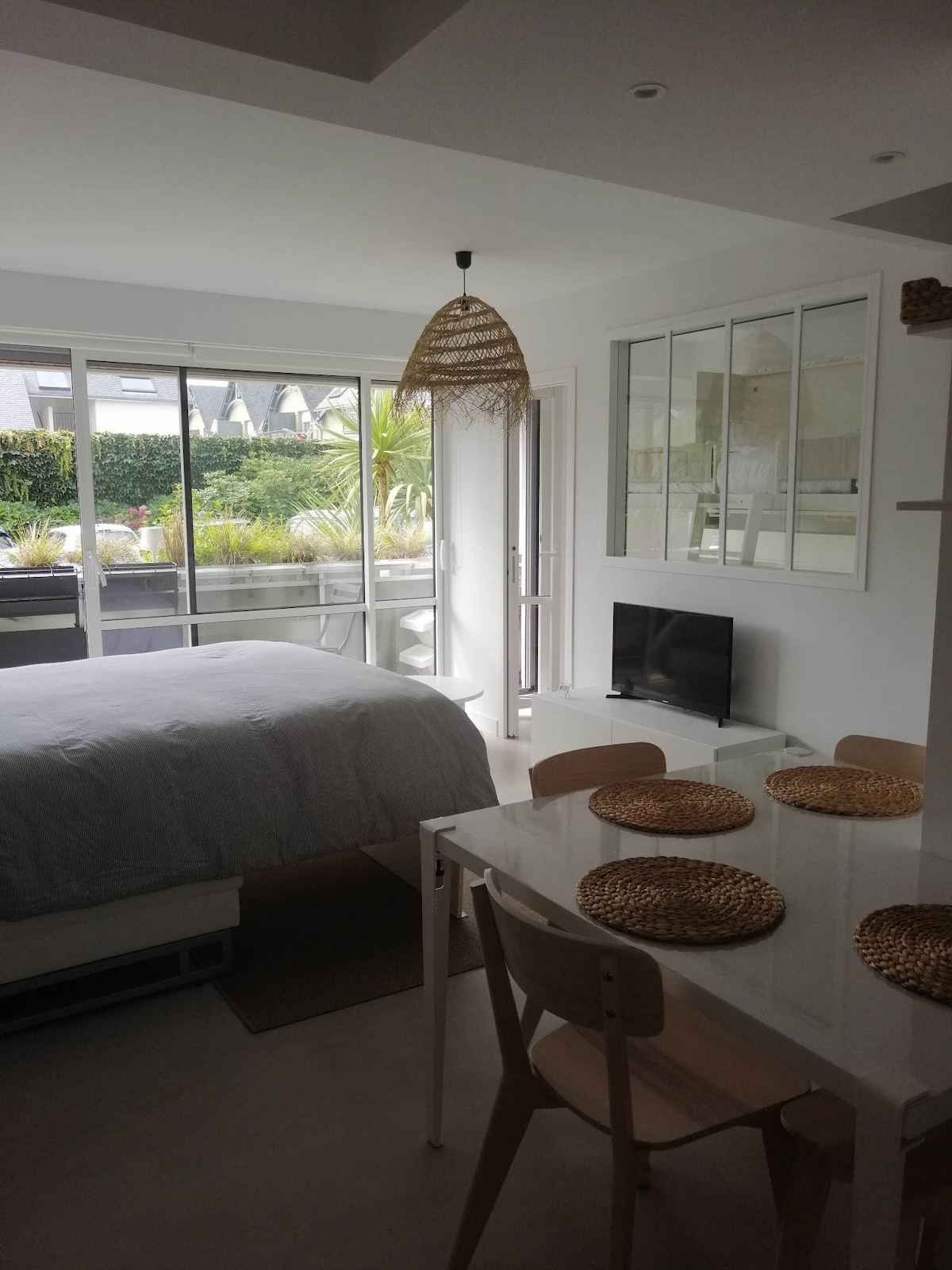 Encantador estudio de 23 m² renovado a 100 m de la playa de Trez. Situado en la 1° planta accesible en ascensor Cocina equipada, horno, microondas, placa de inducción, cafetera, tostadora, hervidor de agua gran vestidor, gran armario cama plegable 140 x 190 sábanas incluidas estudio equipado con wifi, televisor conectado Cuarto de baño separado del inodoro, artículos de tocador proporcionados toallas, alfombra Casino, talasoterapia frente al estudio camino privado, acceso directo a la talasoterapia No hay plaza privada.