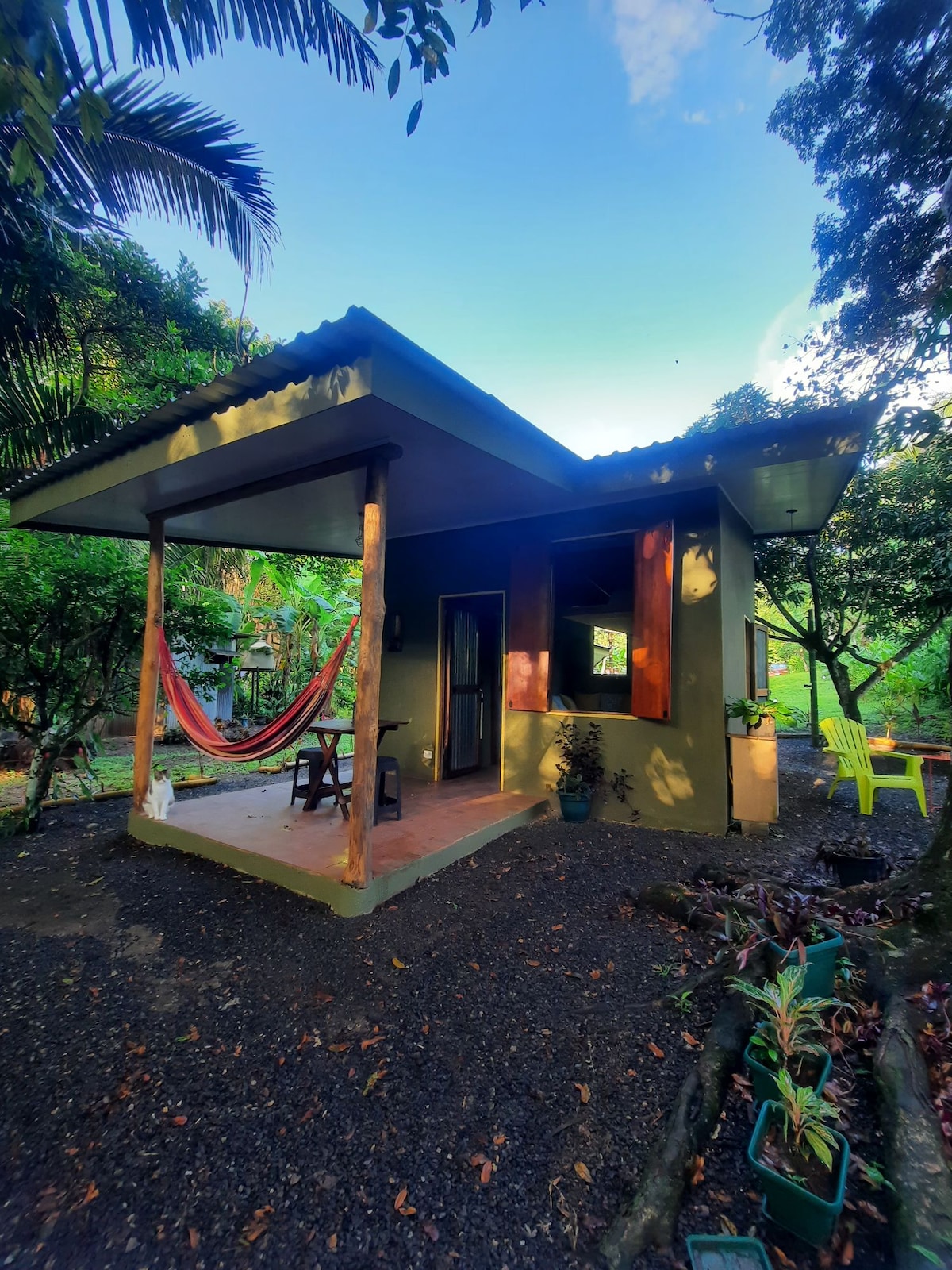 Entspann dich in dieser besonderen und ruhigen Unterkunft in mitten von Wald und blumigem Garten. Die Bungalows befinden sich im Erdgeschoss (EG) und 1. Stock mit Treppe (OG). 1 Bett 2x2m, 1 Kochnische, Kaffeekocher, Herdplatte/Backofen, Geschirr und ein geräumiges Bad erwarten dich. Persönlichen Kontakt mit Gastgeberin. 15 min. zu Fuss bis zur naturbelassenen Playa Órganos (Auto 5 Min) Ein Tico Beizli, Mi-Fr Anmeldung, Sa, So offen!