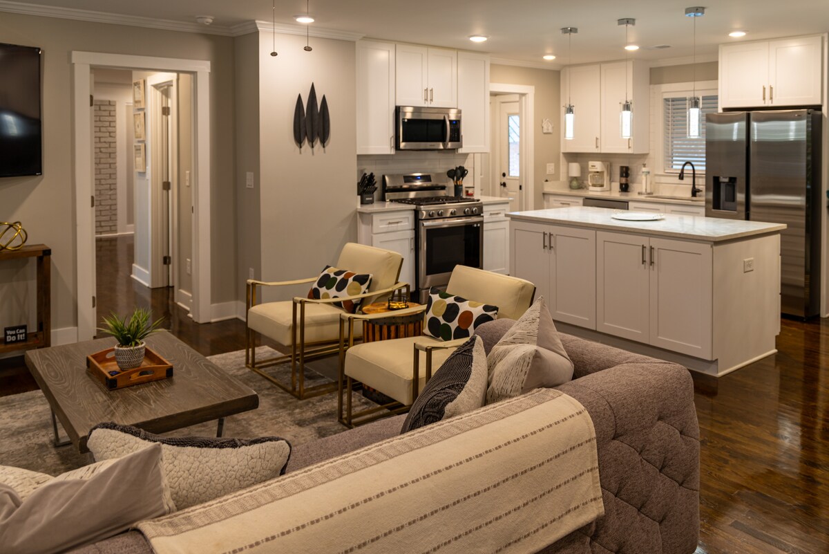 Bienvenido a The Home Run Hideaway, un elegante rancho de 3 dormitorios y 2 baños completamente amueblado en el corazón de Smyrna. Ideal para familias, huéspedes corporativos o aquellos que necesitan alojamiento de seguros, este alojamiento que admite mascotas cuenta con un patio trasero completamente cercado, una chimenea y un relajado espacio de salón al aire libre. En el interior encontrarás una cocina totalmente equipada, wifi rápido y televisores inteligentes. A solo 12 minutos de Truist Park y The Battery, estás cerca de tiendas, restaurantes y autopistas principales. Perfecto para estadías cortas o largas.