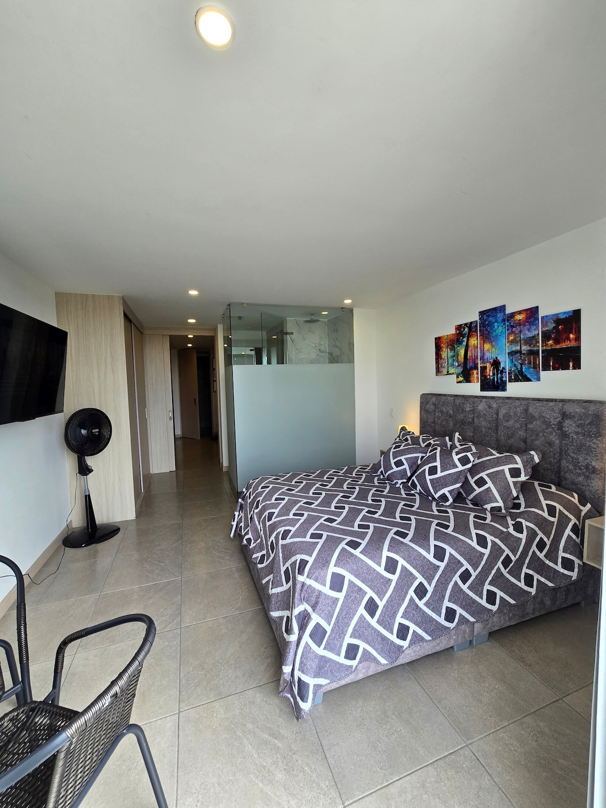 EXCELENTE Ubicación, Apartaloft con DOS Ambientes en UN solo espacio, ALCOBA con acceso amplio SIN puerta, ÁREA 55 m². Espacio DINÁMICO (Dependiendo del tipo de reserva) se acomodan HASTA (5) Huéspedes, HASTA (2) Camas Dobles de 1.40x2.00 con Colchones Resortados y (1) Cama Sencilla. Sala, Cocina completamente Dotada. Tv Smart Led de 53", WiFi, Netflix, Zona de ropas, Agua Caliente en Baño y Cocina, Ropa de cama, Toallas. ESTE ESPACIO ES PRIVADO ( SOLO PARA TI ) Y NO LO COMPARTES CON NADIE MAS.