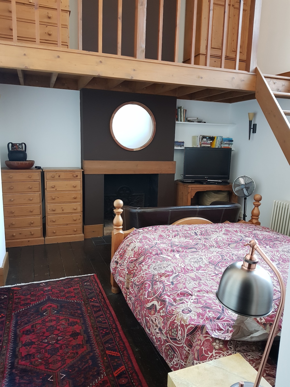 very central location, self-contained flat within a large apartment in a converted school. one double bedroom, room for single guest on mezzanine above kitchen/diner, walk-in shower. mezzanines are accessed by steep unguarded stairs and therefore this flat is not suitable for young children. listed price is for two guests. if second (single) bed is needed there is an additional charge.