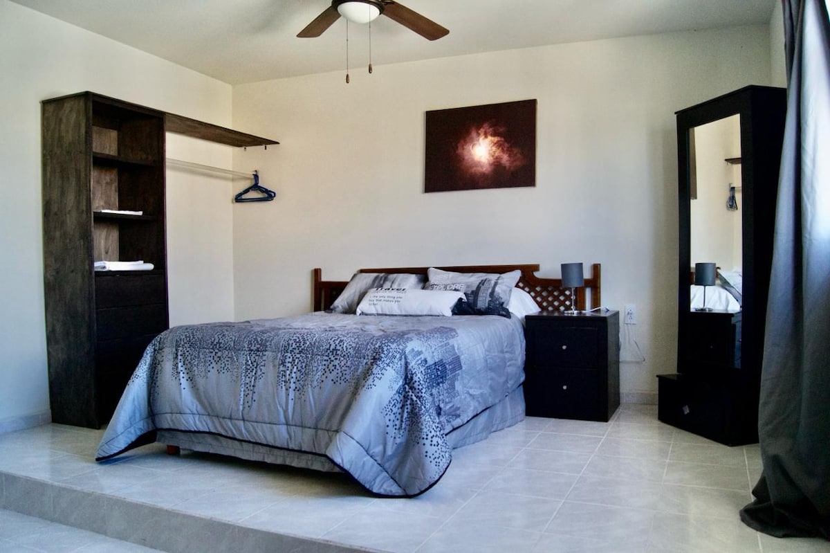 Acogedor alojamiento entero de una recámara para dos personas. Cuenta con dos pantallas, Netflix, Disny+ wifi, estacionamiento gratuito, agua caliente 24/7, utensilios de cocina, refrigerador, parrilla a gas, microondas, agua potable, dentro de un residencial privado con vigilancia las 24 horas. En el tercer piso en una de las zonas mejor ubicadas y conectadas de la ciudad. A un costado de supermercados, restaurantes y plazas comerciales. Cuenta con todo lo necesario para una excelente estancia.
