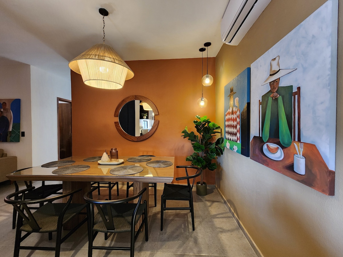 Espacio ideal para trabajo y descanso. Con todo lo necesario para estancias largas y cortas. Ubicada en zona residencial con todos los servicios cercanos, OXXO, fruteria, y tiendas. A 2 cuadras de avenida principal. Cuenta con 2 habitaciones y 4 camas individuales que se convierten en king size; con aire acondicionado y ventiladores para mayor frescura. Televisión con ROKU para que puedas ver todas tus series y programas. WIFI de alta velocidad. Cocina equipada, lavadora, estacionamiento.