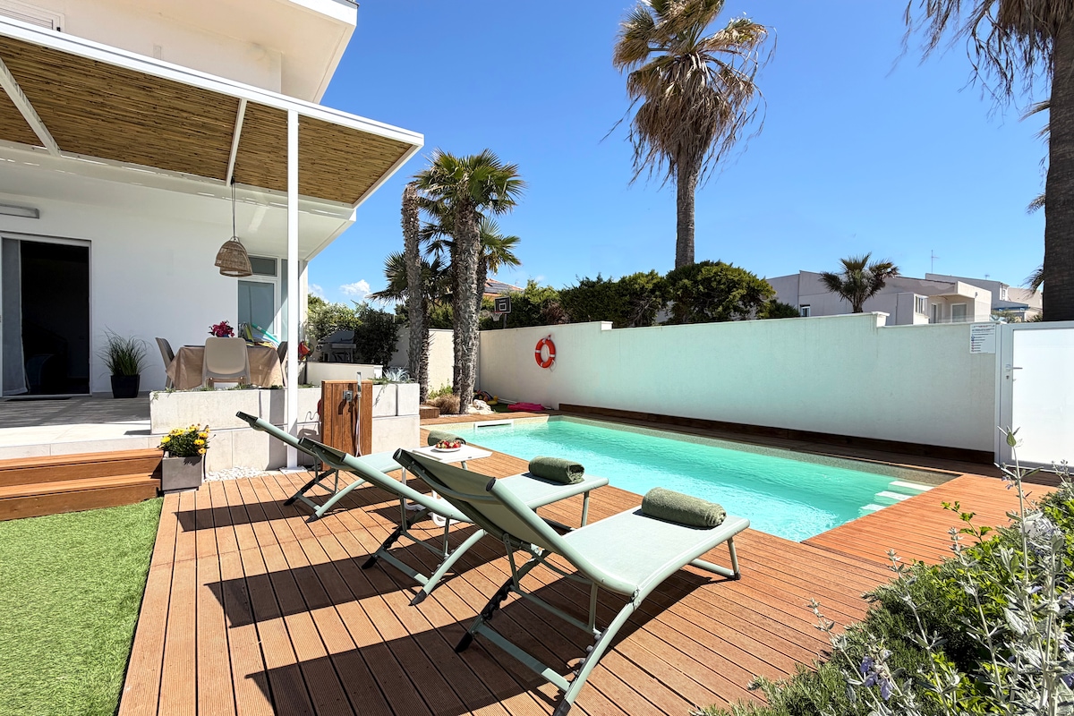 Casa luminosa con grandes puertas de ventana con vistas al jardín. Piscina con ducha exterior. Casa de superficie de más de 140 metros cuadrados con un entorno diurno único (cocina y sala de estar). Ducha grande también adentro. La casa está rodeada de vegetación y puedes acceder a la barbacoa. ¡Que tengas una gran estadía!