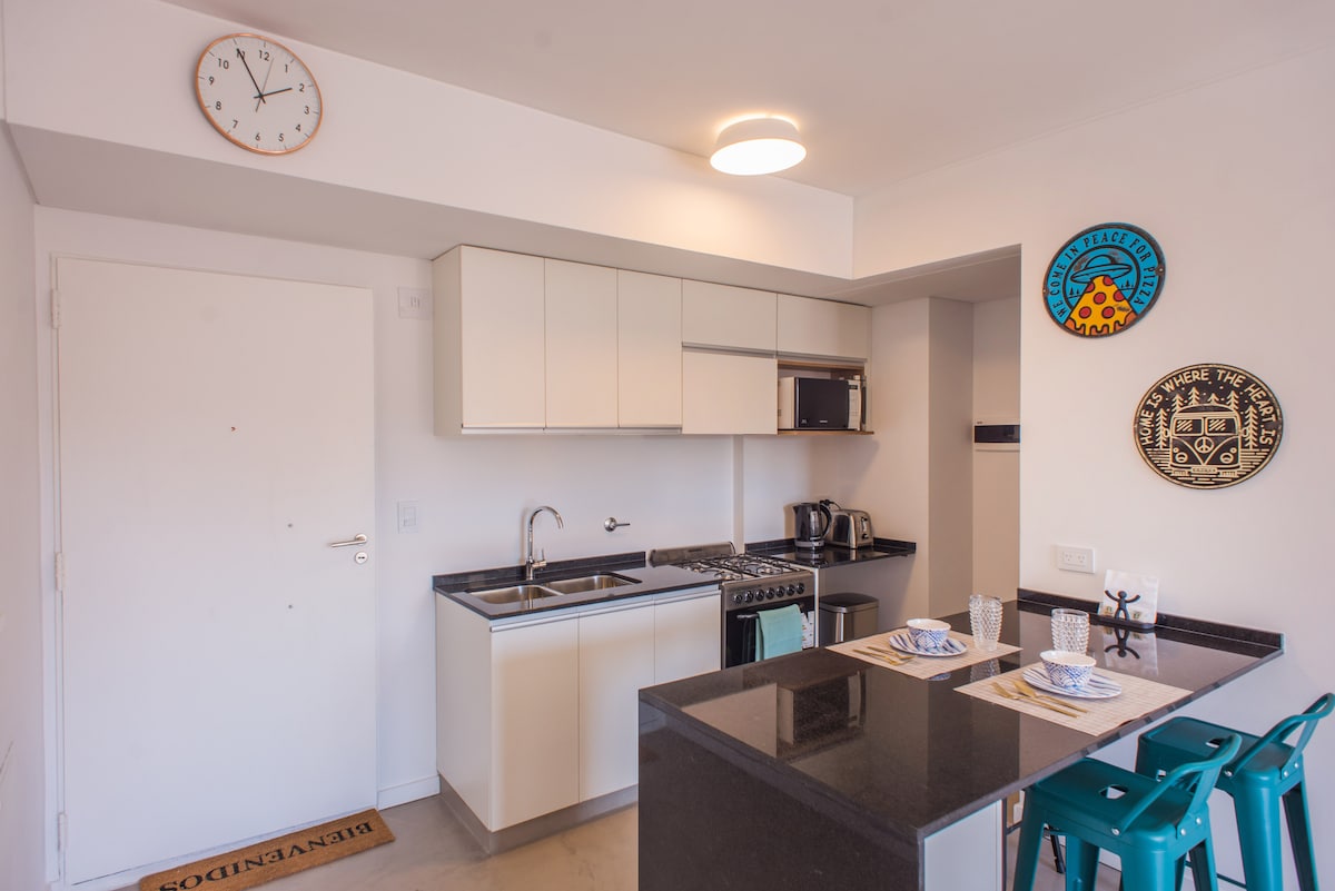 Viví y disfrutá este departamento nuevo, moderno y a estrenar ! Es único en Buenos Aires por su luminosidad, equipamiento moderno, diseño innovador y su ubicación. Tiene capacidad hasta 3 personas, cuenta con un dormitorio, un amplio living y una espectacular terraza. Está totalmente configurado para estadías largas y trabajo remoto. Ubicado en una zona joven y moderna denominada DOHO que es el limite entre los barrios de Belgrano R y Villa Urquiza y con facil accceso al transporte público :)