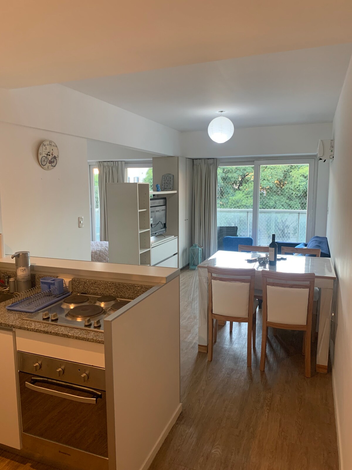 Ambiente con aire acondicionado y wi-fi, luminoso, seguro, tranquilo y con excelente ubicación en el barrio de Caballito. Ideal para parejas que viajan y desean conocer la ciudad. El barrio es muy seguro y el departamento esta situado a 50 mts de avenida Rivadavia, una de las principales. Asimismo, a 150 mts se encuentra la estación de metro mas cercana, ideal para moverse por todos los rincones turísticos de Buenos Aires (San Telmo, centro, Palermo, Recoleta, Abasto)