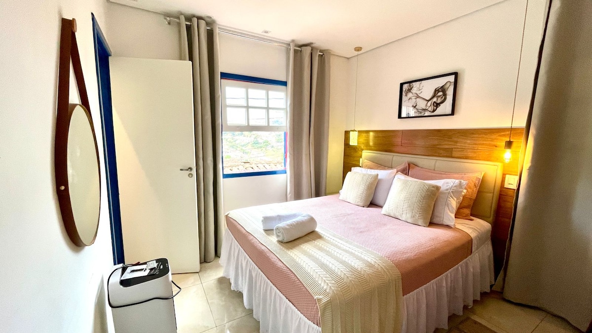 Casa entera en el centro de OP, moderna, a 2 minutos a pie de Praça Tiradentes, en el corazón de la ciudad. Garaje. Tiene 2 dormitorios, 1 cama queen, 1 cama doble estándar y colchones individuales adicionales, 1 sofá cama, capacidad para 7 personas. ¡Colchones nuevos y cómodos! Cocina con utensilios básicos para café, polvo, azúcar, aceite, sal y ajo, y microondas, filtro de arcilla y ventilador de mesa en las habitaciones, calentador portátil. Si no hay vacantes en esta casa, revisa la hermana gemela, enlace airbnb.com/h/csdiamante2