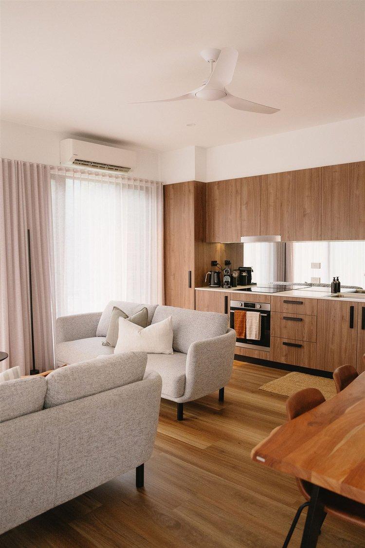 The Perfect surfers location whilst taking in the stunning views at Norries Headland. Cove Little Cabin is your piece of paradise in the gorgeous coastal town of Cabarita Beach. Family friendly with gorgeous coastal interiors, beautiful timber floors, raked ceilings and quality furnishings. This is destined to be your go to holiday pad whilst visiting the ideallic Cabarita coastline. Sit back, relax on the deck with its tropical vibes after a day exploring the coast or surfing the Caba break.