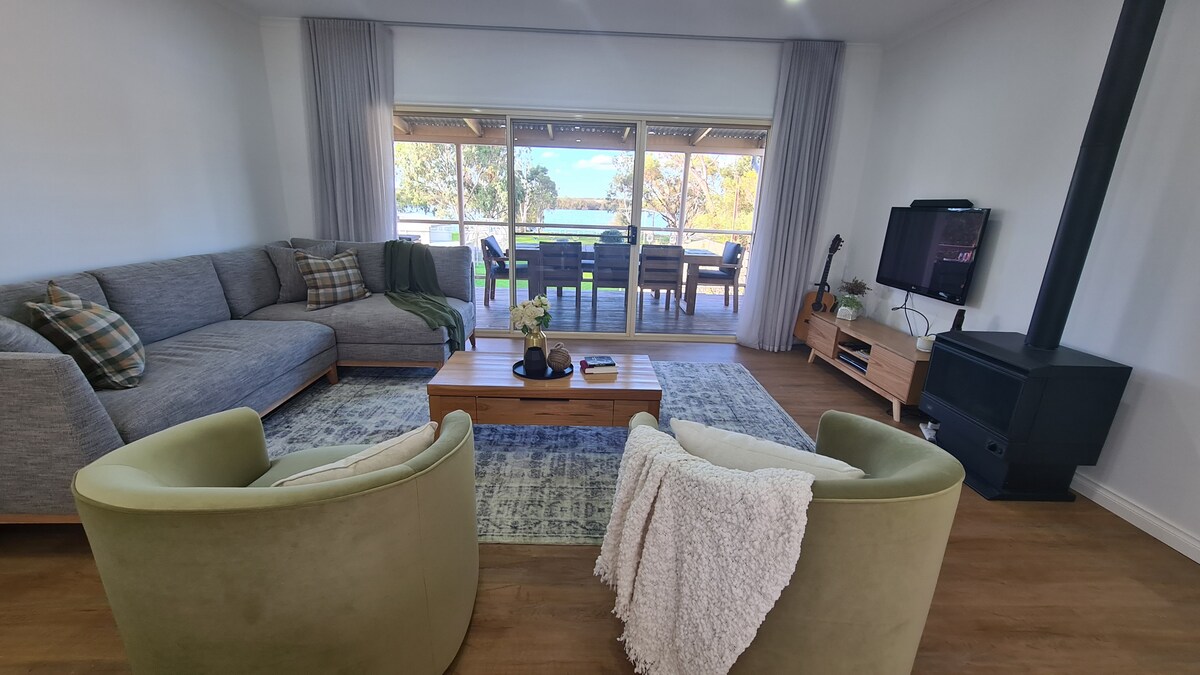 Situado en la tranquila ciudad de Clayton Bay, ‘Apollo Cove’ es la escapada perfecta frente al mar, con vistas ininterrumpidas sobre el río Murray y más allá. Una gran sala de estar, comedor y cocina abierta con un acogedor calentador de combustión. Siéntate y relájate con tu taza matutina viendo salir del sol sobre el agua, o contempla los yates a la deriva de Clayton Bay a última hora de la tarde mientras disfrutas de un buen vino.