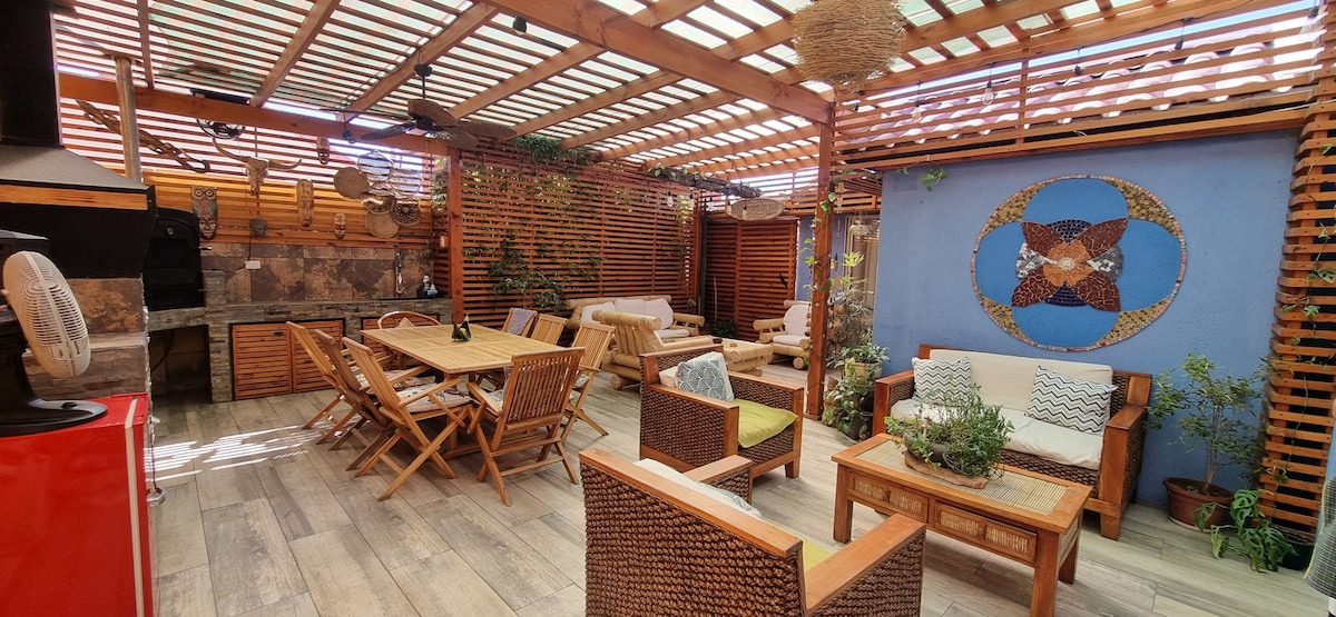 🏡 Relájate en familia en un espacio acogedor y céntrico Disfruta de una estadía tranquila en esta cómoda casa de 3 habitaciones y 2 baños, perfecta para familias o grupos. La habitación principal cuenta con baño en suite. ✔️ Patio amplio con jardín para descansar o compartir. ✔️ Estacionamiento privado. ✔️ Supermercados, restaurantes y servicios a pocos pasos. ✔️ Locomoción a la puerta para moverse con facilidad. Ideal para turismo, trabajo o escapadas de fin de semana.