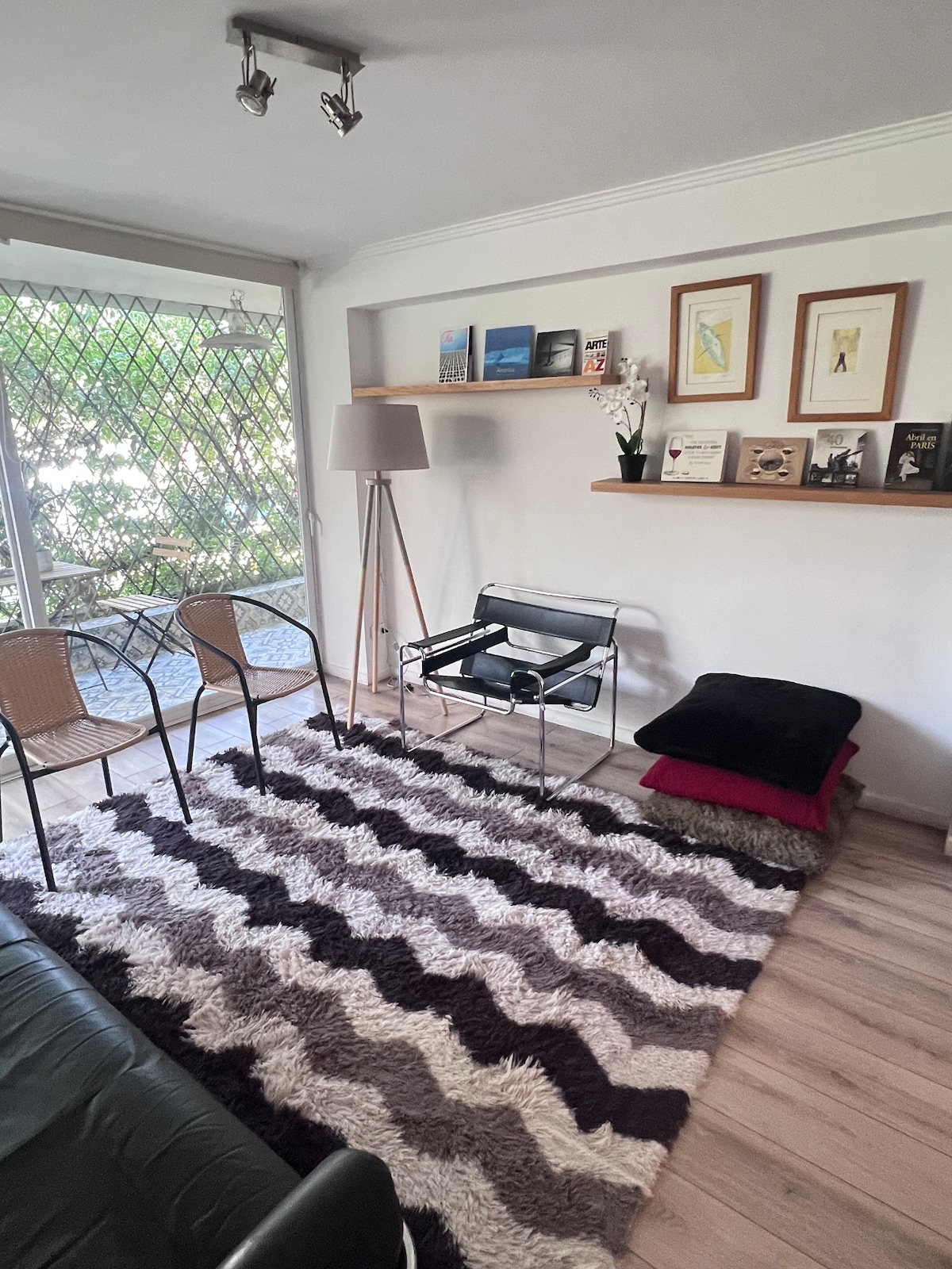 Hermoso Duplex con todas las comodidades básicas. Muy cerca de Metro, excelente ubicación. Primer piso: sala- comedor con sofá cama matrimonial. Terraza espaciosa, linda vista. Segundo piso : baño y dormitorio matrimonial con Smart TV. Cuenta con ropa de cama y toallas para 4 personas, además cocina equipada con lo necesario. Los huéspedes pueden utilizar además piscina (según temporada) lavandería y gimnasio. Máquina para compra de agua potable. Estacionamiento (consultar disponibilidad).