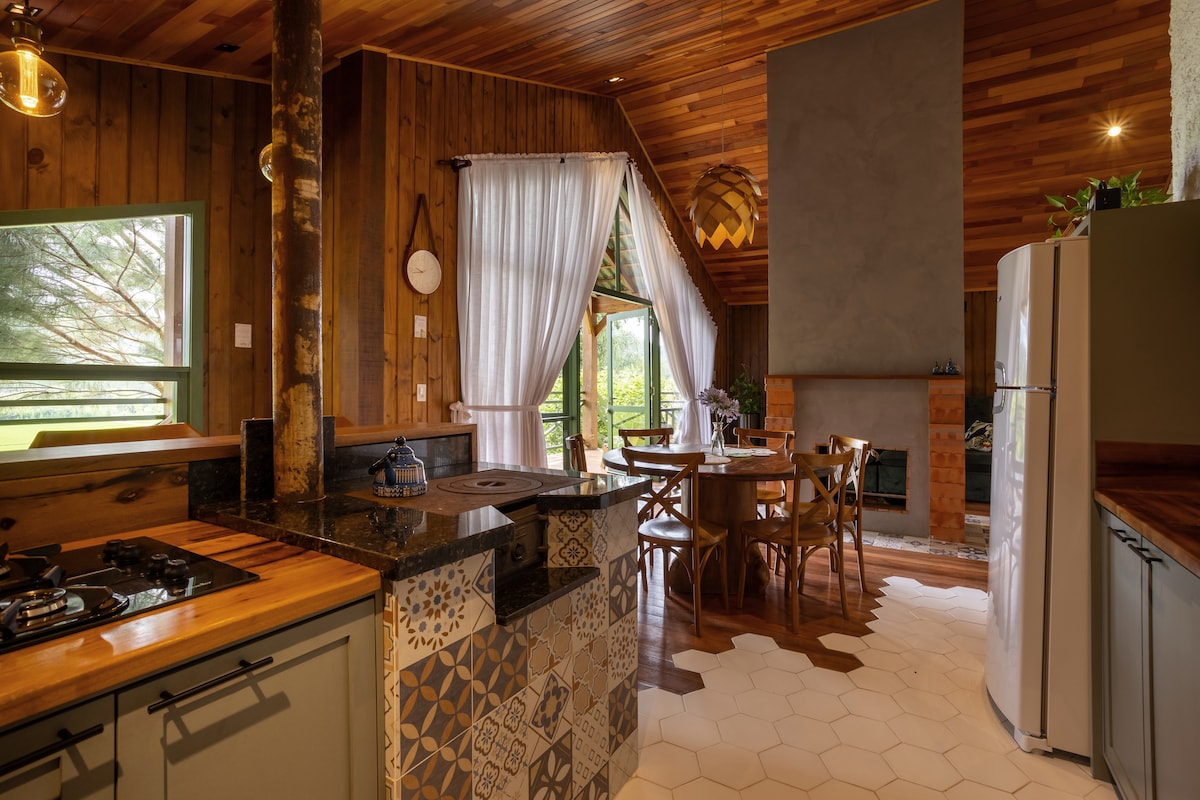 El Prisma da Colina es prácticamente un mirador de la hermosa cordillera de la Serra Catarinense, en Corupá. Toda la pared frontal de la casa está hecha de ventanas extraídas de demoliciones, lo que permite dormir bajo un hermoso cielo estrellado, rodeado por la línea de la Sierra en el horizonte. El piso de madera antigua, los muebles antiguos (herencias de hasta 100 años), la biblioteca privada con varios libros y la naturaleza que lo rodea le dan un encanto especial al lugar.
