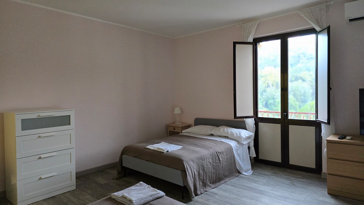 Newly restored apt, kitchen, bath, 2 bedrooms, 2 terraces, in an old building in the medieval village of Belmonte Calabro, 200 m above the sea level. Remote working zone with super WI-FI! Beach up to december with our 20-25°, swim and get a nice sun on an amazing sand! The town offers culture, history, sports, natural trails, sea and beach. Trekking and Water trekking available in a river from the beach to the Cocuzzo mountain, 1541 m above the sea level. Shuttle service online on automanbus.it