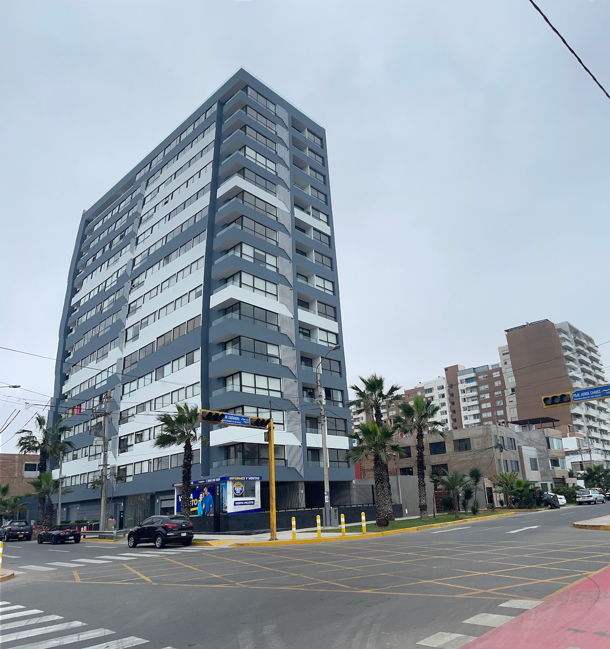 El Departamento esta ubicado cerca al aeropuerto y a 15 minutos de Miraflores por el circuito de playas ,puedes disfrutar de una vista al mar desde todos los ambientes ,contamos con servicio de transporte y tenemos soporte al huespede 24/7. . El departamento está totalmente equipado , agua caliente de alta velocidad, Wifi , 2 TVs de 55’ y cuenta con una piscina panorámica en el ultimo piso , así como sauna y gimnasio .