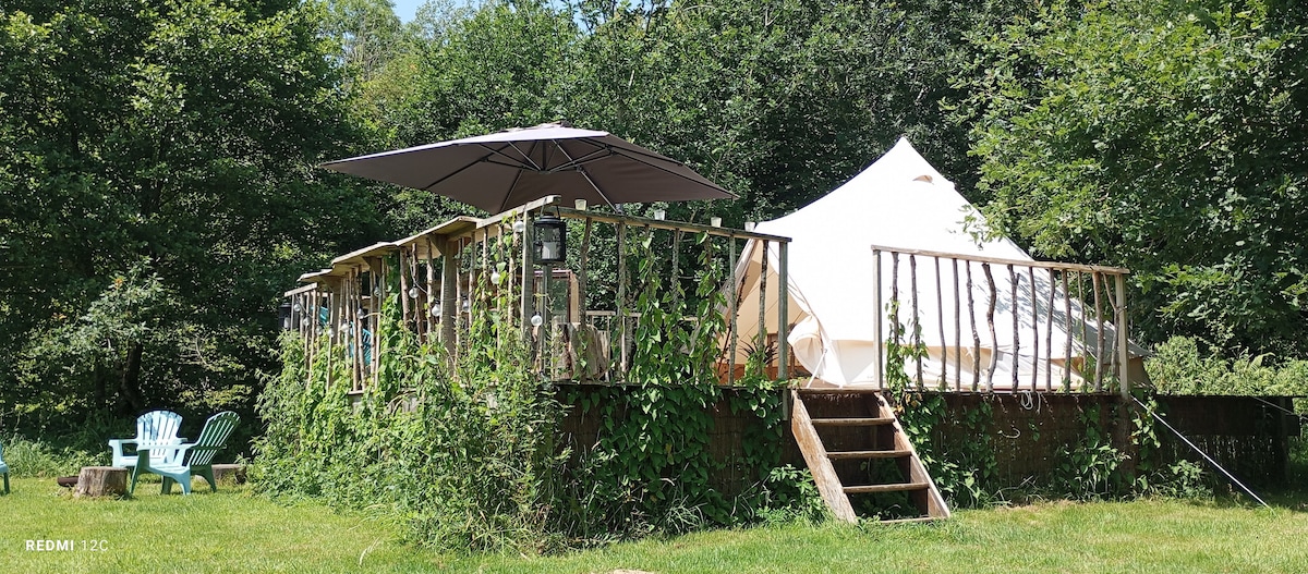 Vous dormirez dans une tente en coton sur une terrasse pilotis. Plus de 1 hectare au cœur de la nature rien que pour vous ! Je propose un hébergement insolite sous le thème du bien-être, du vivre simplement et de l'écologie. Si vous êtes des amoureux de la nature, vous êtes au bon endroit ! *Lire tout le descriptif et me signaler lors de la réservation vos options. -Massage bien-être à partir de 25€ -Différentes options pour un séjour personnalisé selon vos envies et votre budget !
