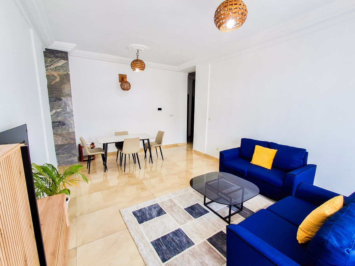 🏅Los alojamientos más populares del 10% en Airbnb. Disfruta de un elegante apartamento de 3 dormitorios en el corazón de la Zona 4. Luminoso, elegante y acogedor, cuenta con una decoración de buen gusto, tonos suaves, detalles dorados y arte local. Perfecto para relajarse o trabajar de forma remota, con ropa de cama de calidad hotelera, una cocina totalmente equipada y limpieza diaria incluida. La seguridad las 24 horas, los 7 días de la semana, garantiza la tranquilidad durante tu estancia en uno de los barrios más vibrantes de Abidján.