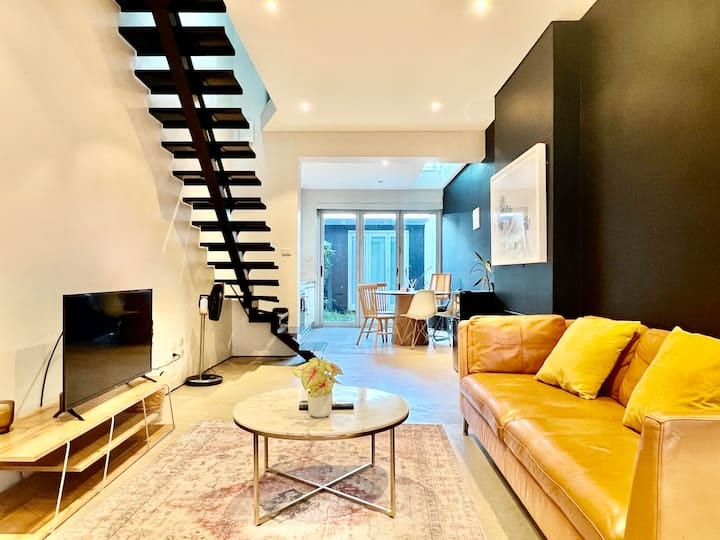 Lo mejor de ambos mundos: casa de campo en el centro de la ciudad en un tranquilo oasis subtropical. Una casa segura con todas las comodidades modernas que necesitas y muy cerca de todo lo que la ciudad de Sídney tiene para ofrecer. Alojarse aquí se siente como un refugio privado que es espacioso, abierto y rodeado de verde, al tiempo que es una base perfecta para explorar la moderna Redfern y el interior de Sídney. La estación de Redfern está a 5 minutos a pie, a 10 minutos de Central y a pocos minutos de hermosos parques, tiendas, bares y restaurantes de Redfern. El aeropuerto está a 12 minutos en tren.