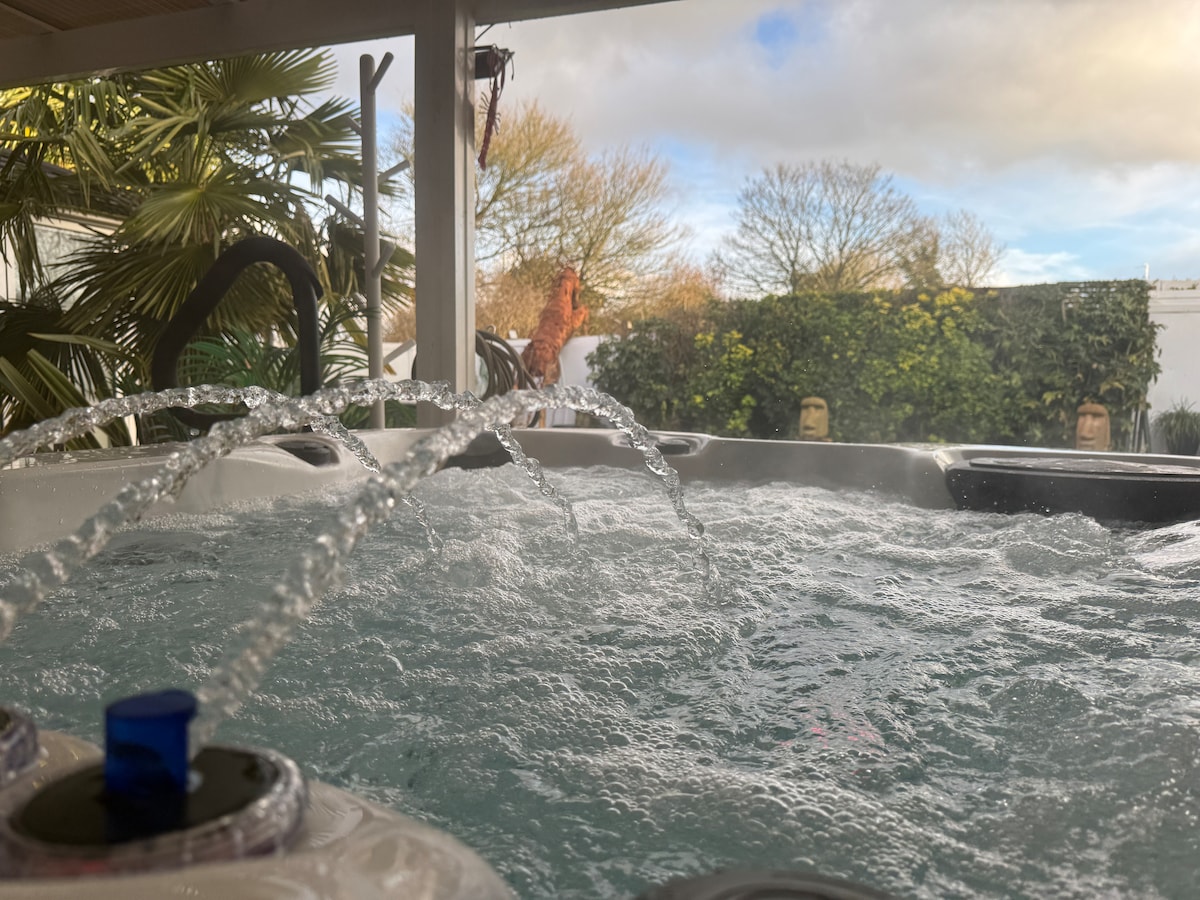 Bienvenido a tu lujosa cama de 4 plazas con jacuzzi y sauna, a pocos minutos de Oxford y frente al Palacio de Blenheim. Perfecto para escapadas de spa, reuniones familiares, explorar Cotswolds y viajes de trabajo entre semana. • Jacuzzi, sauna de cedro y ducha exterior. • Wifi súper rápido, espacio de escritorio y televisor inteligente de 65 pulgadas. • Cocina del chef, salón de planta abierta con vistas a la arboleda • 4 dormitorios serenos con sábanas de felpa y persianas opacas. • Cargador de vehículos eléctricos y estacionamiento cerrado para más de 4 coches ¡Reserva ahora para asegurar tus fechas en este raro hallazgo de Oxfordshire!