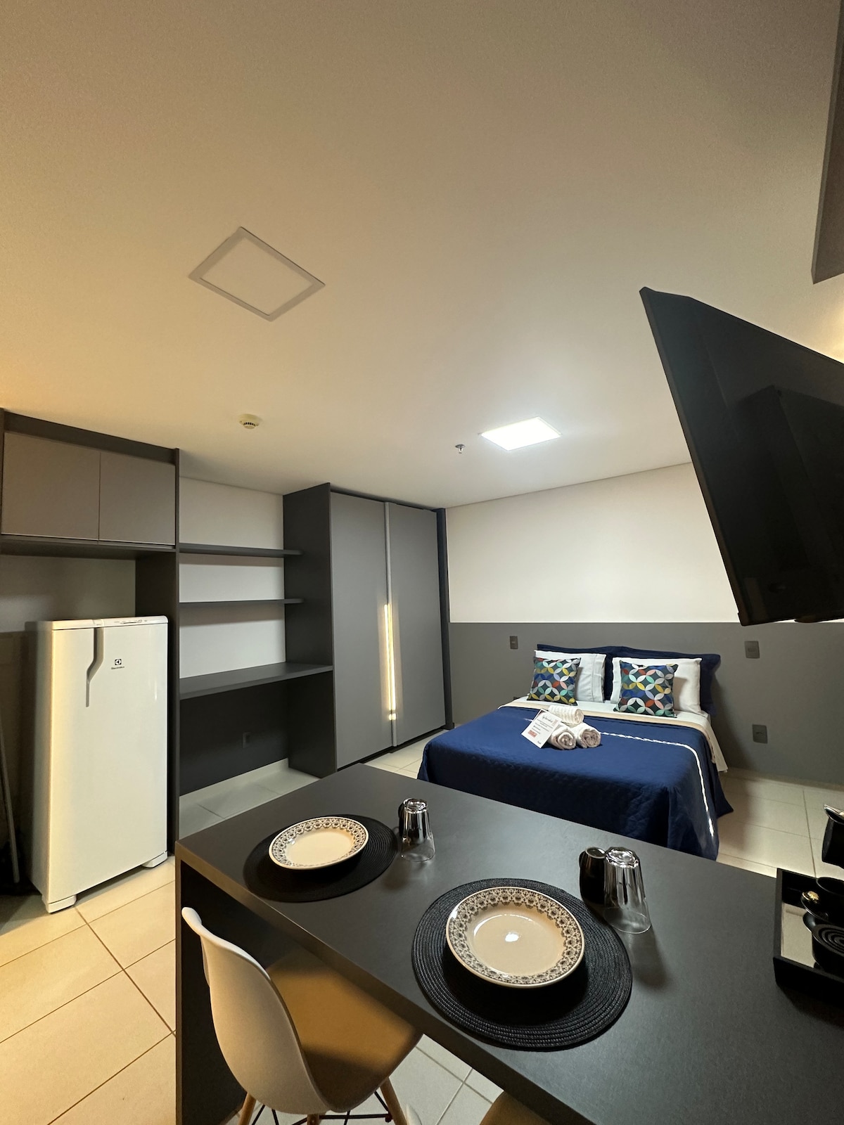 Apartamento Studio nuevo y moderno ubicado en una zona privilegiada de Ribeirão Preto, cuenta con Wi-Fi, aire acondicionado, cocina completa, smart Tv 40', gimnasio BlueFit en el edificio, Air fryer, plaza de garaje y área de ocio completa, piscina, sauna, sala de juegos, espacio gourmet, espacio de coworking para trabajar, home market 24h y la mejor ubicación de la ciudad, en la Avenida Presidente Vargas a 3 minutos del centro comercial Ribeirão y cerca de los mejores parques, bares y restaurantes de Ribeirão.
