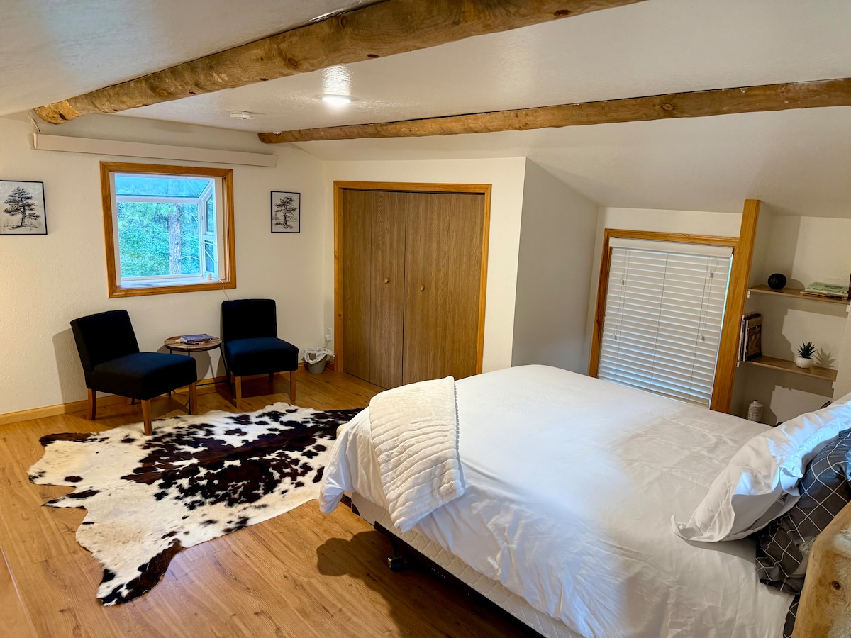 Acogedor loft en el Lead, Dakota del Sur. A pocos minutos del centro de la ciudad, pero aislado. A minutos de actividades al aire libre, esquí, raquetas de nieve, senderismo, ciclismo o motos de nieve. Meses de invierno, ¡el vehículo de tracción en todas las ruedas / 4 ruedas es imprescindible! ¡Cerca de restaurantes, pubs cerveceros y vida nocturna! Cocina pequeña: microondas, cafetera, tostadora, placa calefactora (con sartenes) y nevera pequeña. El loft tiene calefacción eléctrica y aire acondicionado portátil. Hay 18 escalones para llegar al loft, para dos personas. No es a prueba de niños. No se aceptan mascotas.