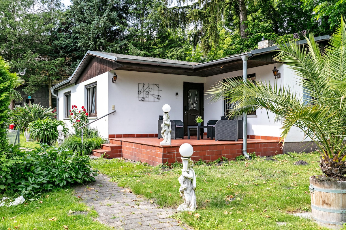 Das freistehende Ferienhaus (ca. 70 qm) mit 3 Zimmern, Küche, Bad einer großen Terasse und eigenem Garten befindet sich in idyllischer, ruhiger Waldrandlage in Schulzendorf und ist idealer Ausgangspunkt für Unternehmungen nach Berlin und Brandenburg (z.B. Potsdam, Tropical Island, Spreewald). Im Sommer laden die Badewiese am Zeuthener See und das Freibad am Miersdorfer See zum Baden ein. Gastronomie und Einkaufsmöglichkeiten befinden sich in den Ortszentren Schulzendorf, Eichwalde und Zeuthen.