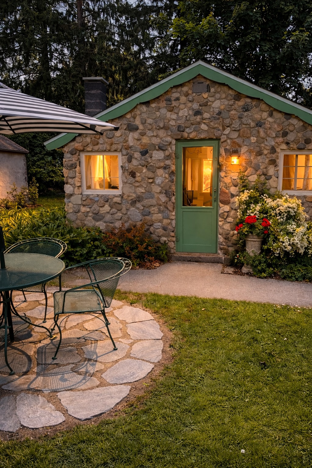 Welcome to our Stone Cottage, a property of the Green Buoy Resort. This charming cottage from the 1930’s has modern amenities & lovely views of Portage Lake. Our Stone retreat has a cozy fireplace, original windows, a wooden screen door for enjoying lake breezes plus a vintage Esther Williams pool for relaxing. Enjoy our adults only property! Grill by your patio, roast s’mores at the campfire. A perfect landing spot for day trips on M22, the scenic route through small towns in Northern Michigan.