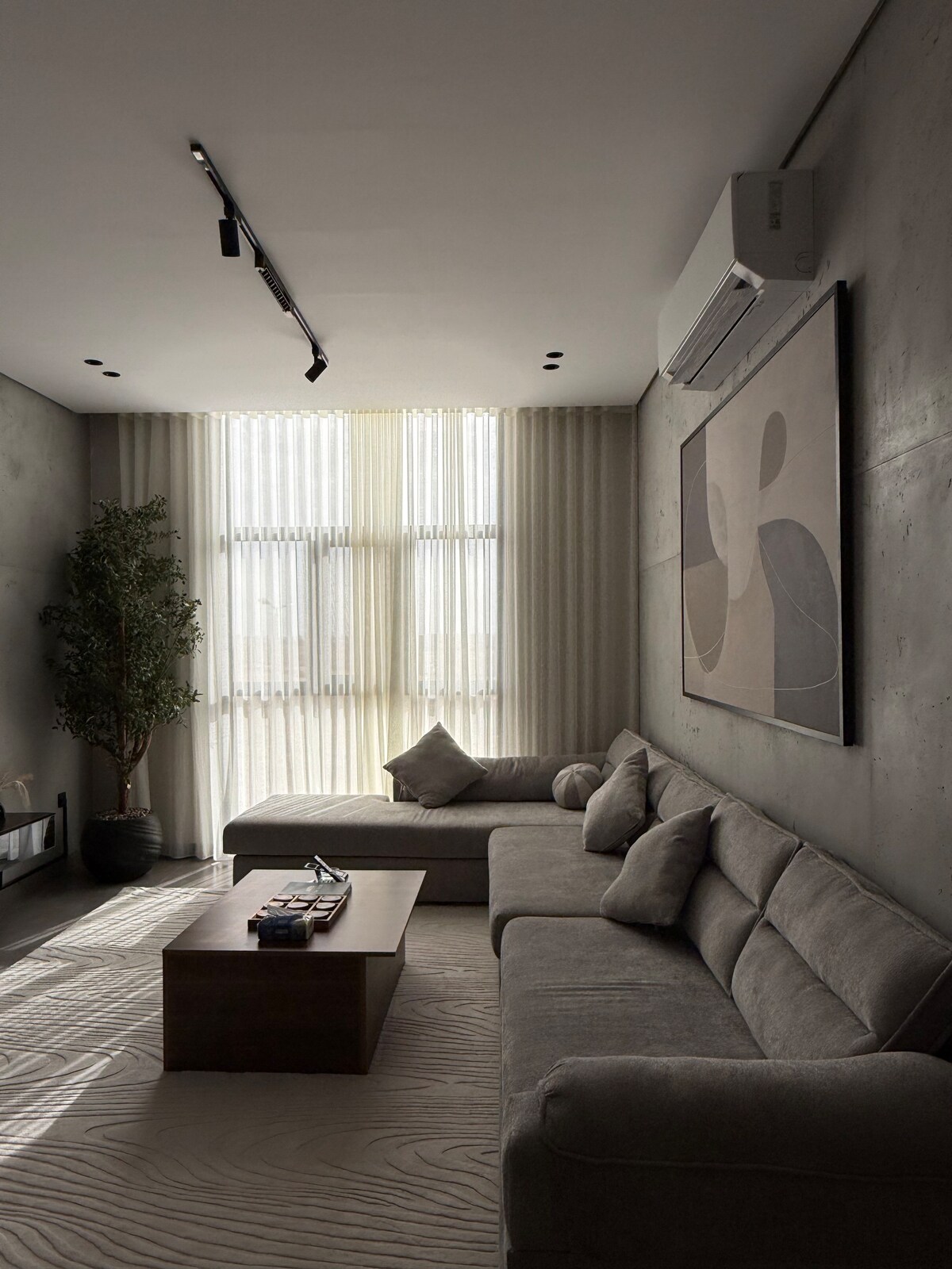 Departamento con diseño moderno, que cuenta con dos dormitorios, una elegante sala de estar y una cocina.