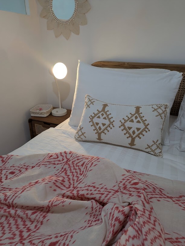 Luxury remodeled guesthouse in the heart of Umalas! Stay in a modern studio with premium bedding, 43” smart TV (Netflix account inc. or use as 2nd monitor), AC, and one of Bali’s rare true workstations: a large desk, ergonomic chair, and FAST WiFi. Steps from Bumbak’s cafés (Tacos Aqui, NEW Nude restaurant) and 5 minutes to Canggu's restaurants & Finns Beach Club. Enjoy your private room plus access to a shared kitchen and cozy common spaces. Perfect mix of work, style, and Bali vibes.